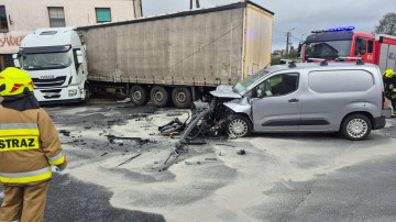 Zderzenie ciężarówki z osobówką w Barkowie, w gminie Człuchów. Dwie osoby zabrano do szpitala. Utrudnienia trwały kilka godzin