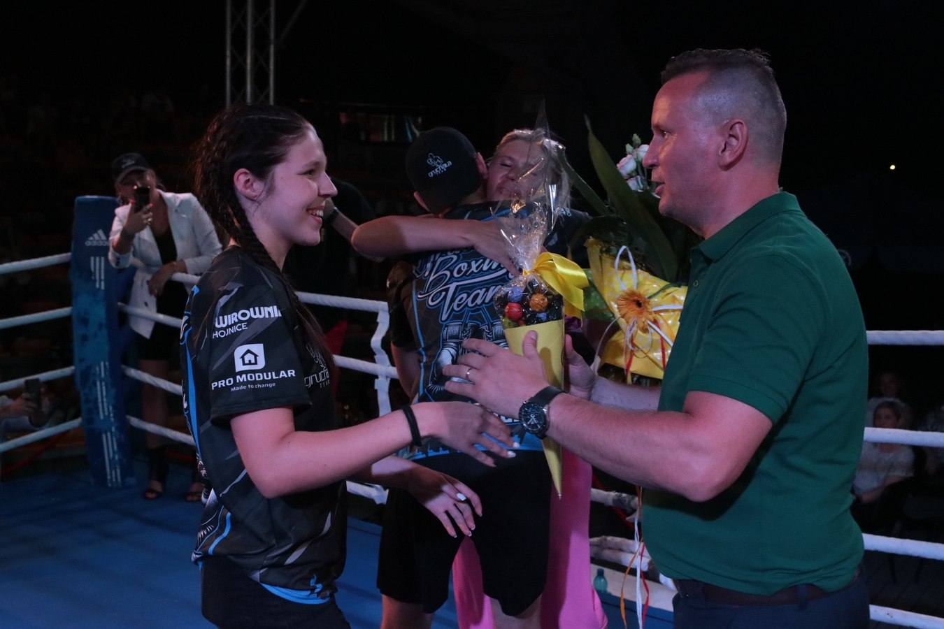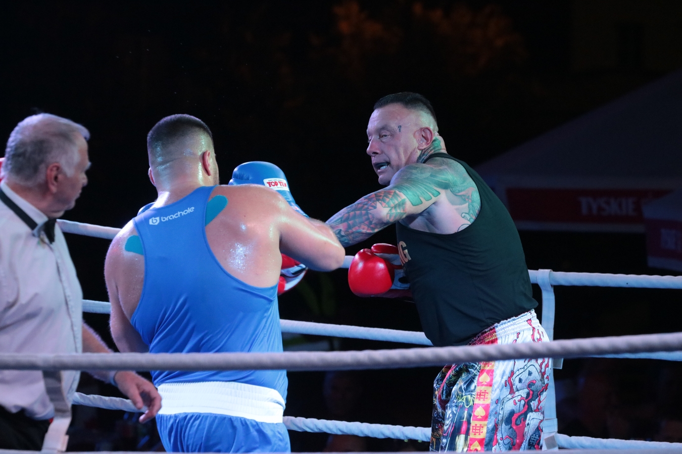 Nierozstrzygnięta pozostała walka wieczoru podczas drugiej edycji Śliwickiego Boxing Show. Po czterorundowym pojedynku sędziowie orzekli remis w starciu Rafała Jackiewicza z Damianem Mielewczykiem. Zresztą takim werdyktem zakończyło się pięć z 14 walk z głównej karty. Wśród nich był pojedynek towarzyski Sebastiana Porazińskiego z Tucholi, który akurat w śliwickim amfiteatrze debiutował w ringu w wieku 48 lat.