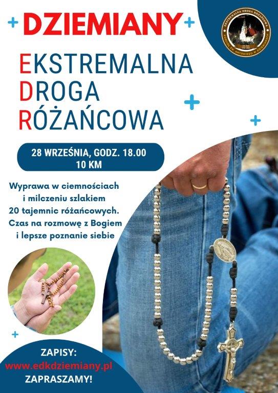 W Dziemianach w powiecie kościerskim dziś (28.09) Ekstremalna Droga Różańcowa. Będzie to nocna wyprawa z modlitwą i głęboką kontemplacją. Uczestnicy pokonają w ciszy i z dala od zabudowań około 10 km. Początek o godz. 18.00 w kościele św. Antoniego w Dziemianach. Jak podkreślają organizatorzy wydarzenia, koniecznie trzeba zabrać ze sobą latarkę czołówkę i otwarte serce.