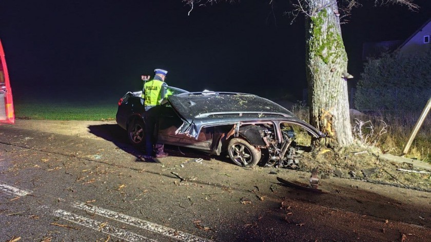 Volkswagen passat uderzył w drzewo w gminie Nowa Karczma. Nie żyje kierujący pojazdem 25-latek
