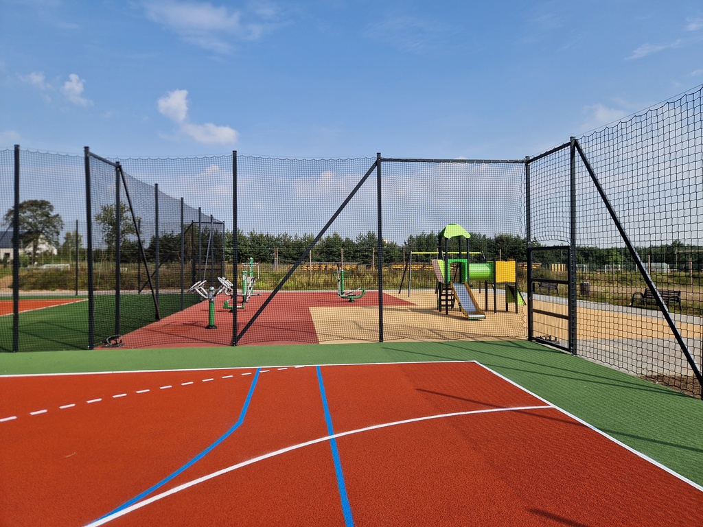 - Są tutaj zewnętrzne boiska wielofunkcyjne do gier zespołowych, mamy kort tenisowy, mamy plac zabaw, siłownię zewnętrzną i budynek zaplecza sanitarno-szatniowego, który będzie bezpośrednio służył przy tej płycie dużego boiska, które tam się znajduje, a głównie z tego boiska korzysta klub Santana, który prowadzi kilka drużyn.