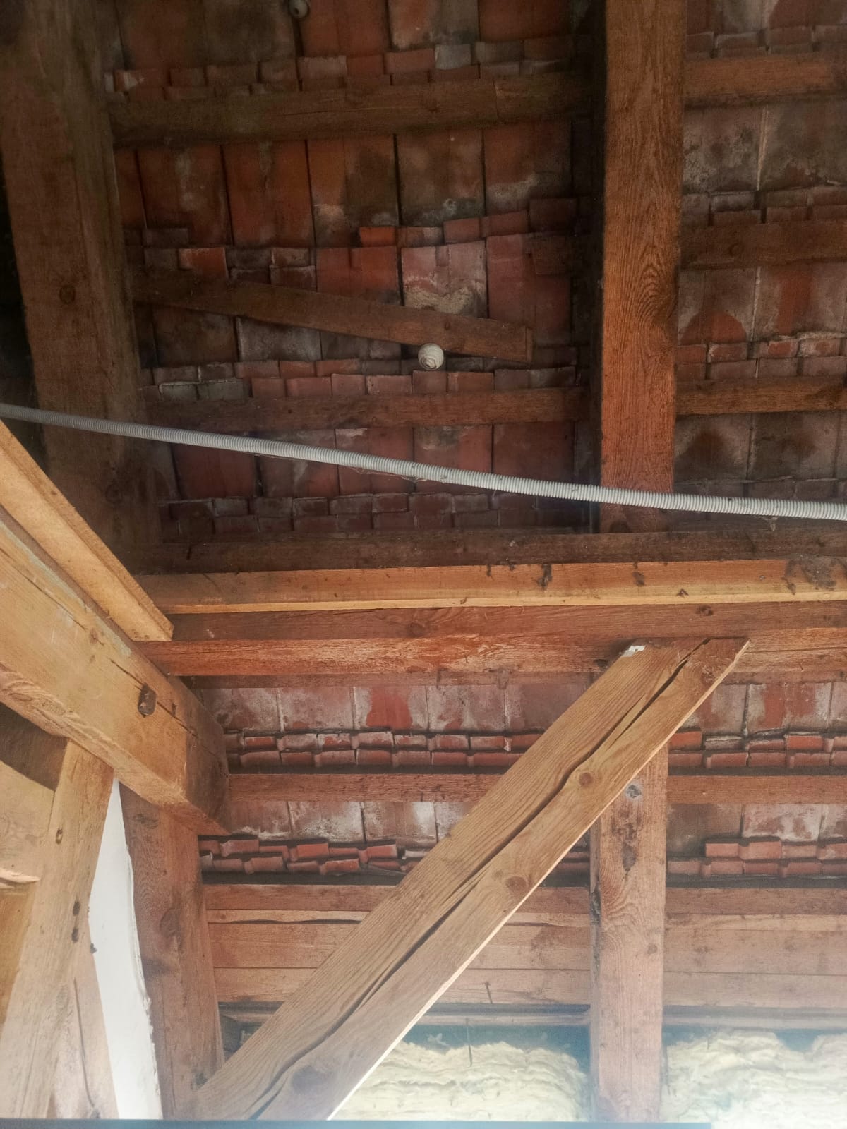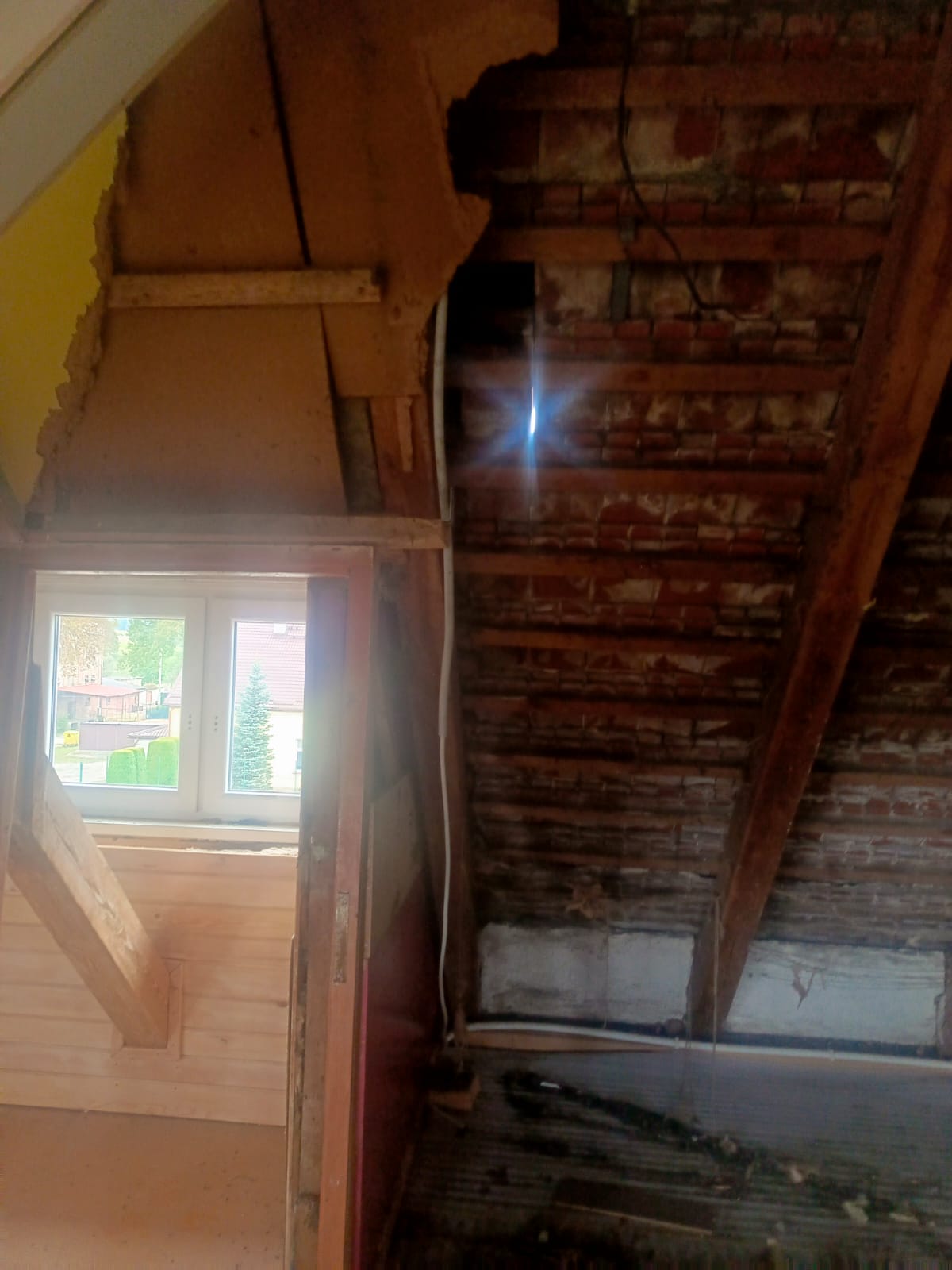 Po zdjęciu ocieplenia na poddaszu uwidoczniła się potrzeba remontu dachu, który ten remont tak naprawdę nie przewidywał. Nie wiem co tam będzie z tym dalej, bo uważam że jeśli w środku zrobimy cudownie, a tak będzie po tym projekcie, a będzie zaciekać to, jest to słabe nie.