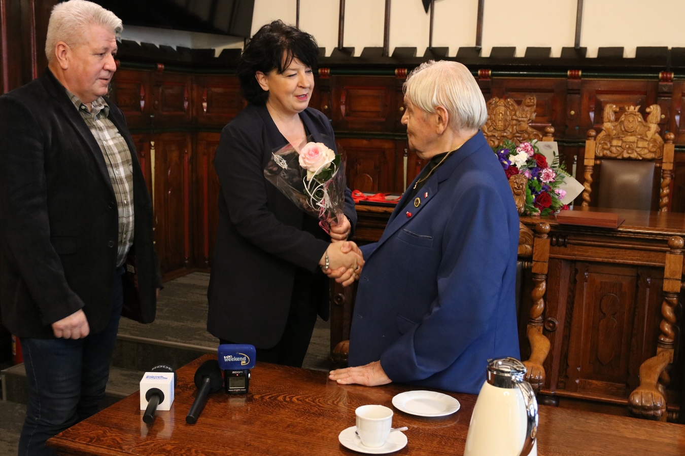 "Ku chwale Chojnic" - te słowa kilka razy powtórzył legendarny pięściarz i trener boksu Kazimierz Poteracki, odbierając dziś (14.11) tytuł Zasłużonego Obywatela Miasta Chojnice. Uchwałę i okolicznościowy medal burmistrz Arseniusz Finster wręczył mu podczas uroczystości w ratuszu.