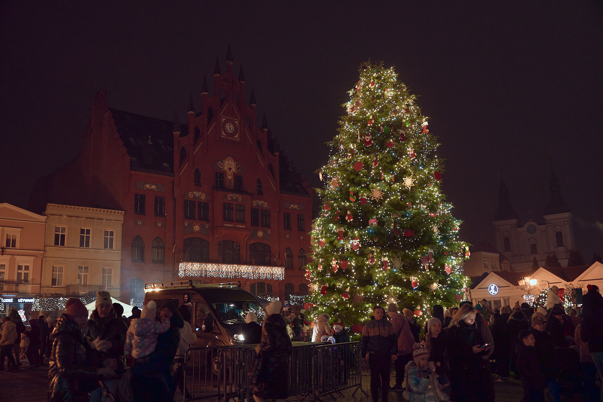 W tym roku choinkę na chojnicki rynek podarowali mieszkańcy ulicy 18. Pułku Ułanów. To 13-metrowa jodła jednobarwna. Drzewo ustroili pracownicy i uczestnicy Warsztatu Terapii Zajęciowej.