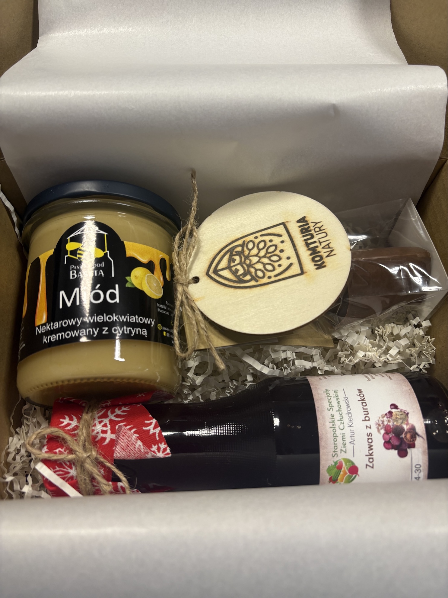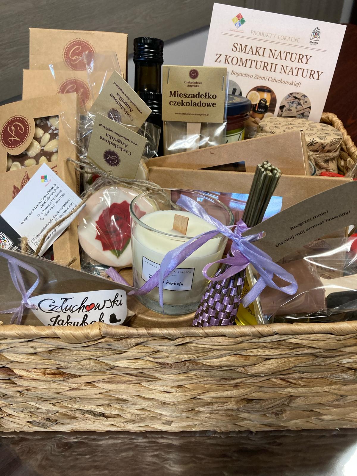 - Kosze podarunkowe: idealne na prezenty świąteczne, firmowe lub okolicznościowe – pełne smaków i rękodzieła z naszego regionu.