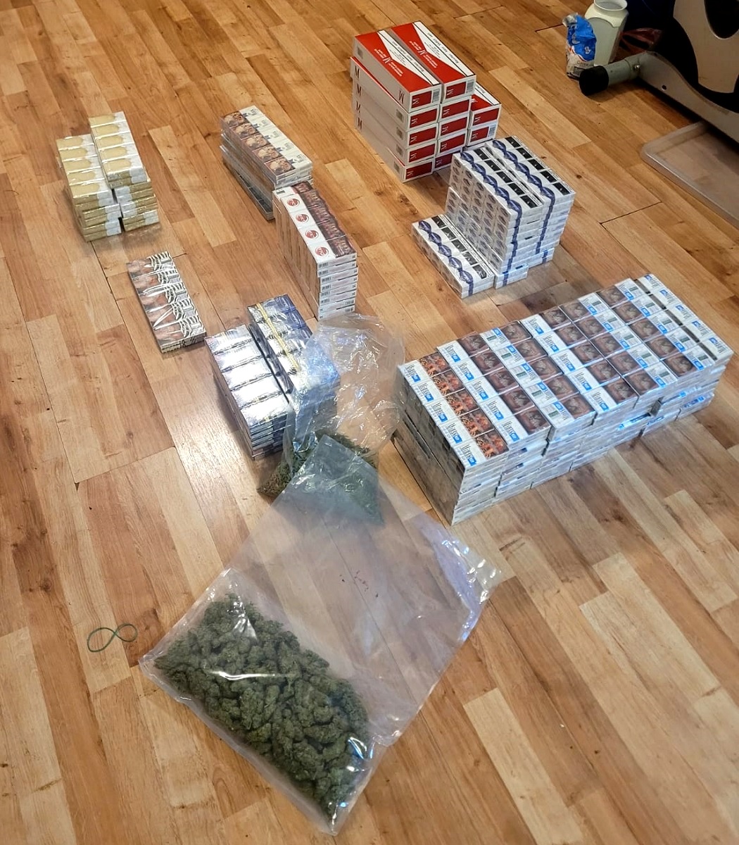 W jego domu funkcjonariusze znaleźli i zabezpieczyli ponad 30 kilogramów krajanki i 2115 paczek nielegalnych papierosów. Uszczuplenie podatku akcyzowego na szkodę Skarbu Państwa wyniosło w tym przypadku blisko 90 tysięcy złotych. W trakcie przeszukania mundurowi ujawnili także blisko 190 gramów suszu roślinnego oraz 104 gramy białego proszku. Wyniki laboratoryjne potwierdziły, że była to marihuana oraz amfetamina.