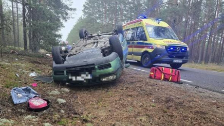 Dachowanie na drodze wojewódzkiej 236 w pobliżu Drzewicza, w gminie Chojnice. Kierująca trafiła do szpitala (AKTUALIZACJA)