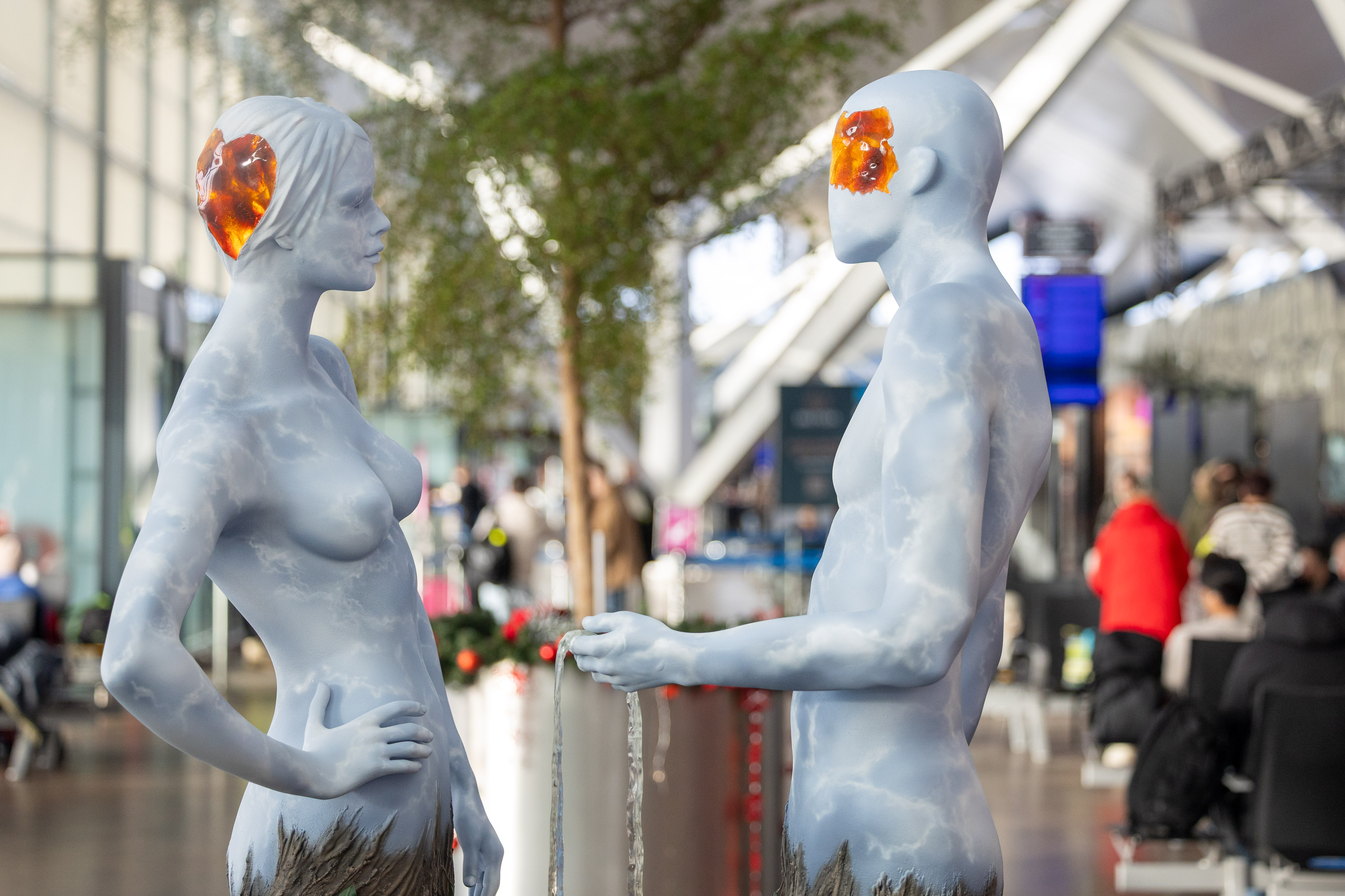 ´Taniec żywiołów´ - rzeźba wykonana przez Marka Zaleskiego, ale zaprojektowana przez zmarłego niecałe dwa lata temu Julla Dziamskiego - została dziś (7.01) odsłonięta w terminalu Portu Lotniczego im. Lecha Wałęsy w Gdańsku. Wcześniej prezentowana była podczas targów EXPO 2025 w Osace w Japonii. Dzieło projektu artysty pochodzącego z Poznania, mieszkającego w Chojnicach, a tworzącego pod Człuchowem symbolizuje województwo pomorskie.