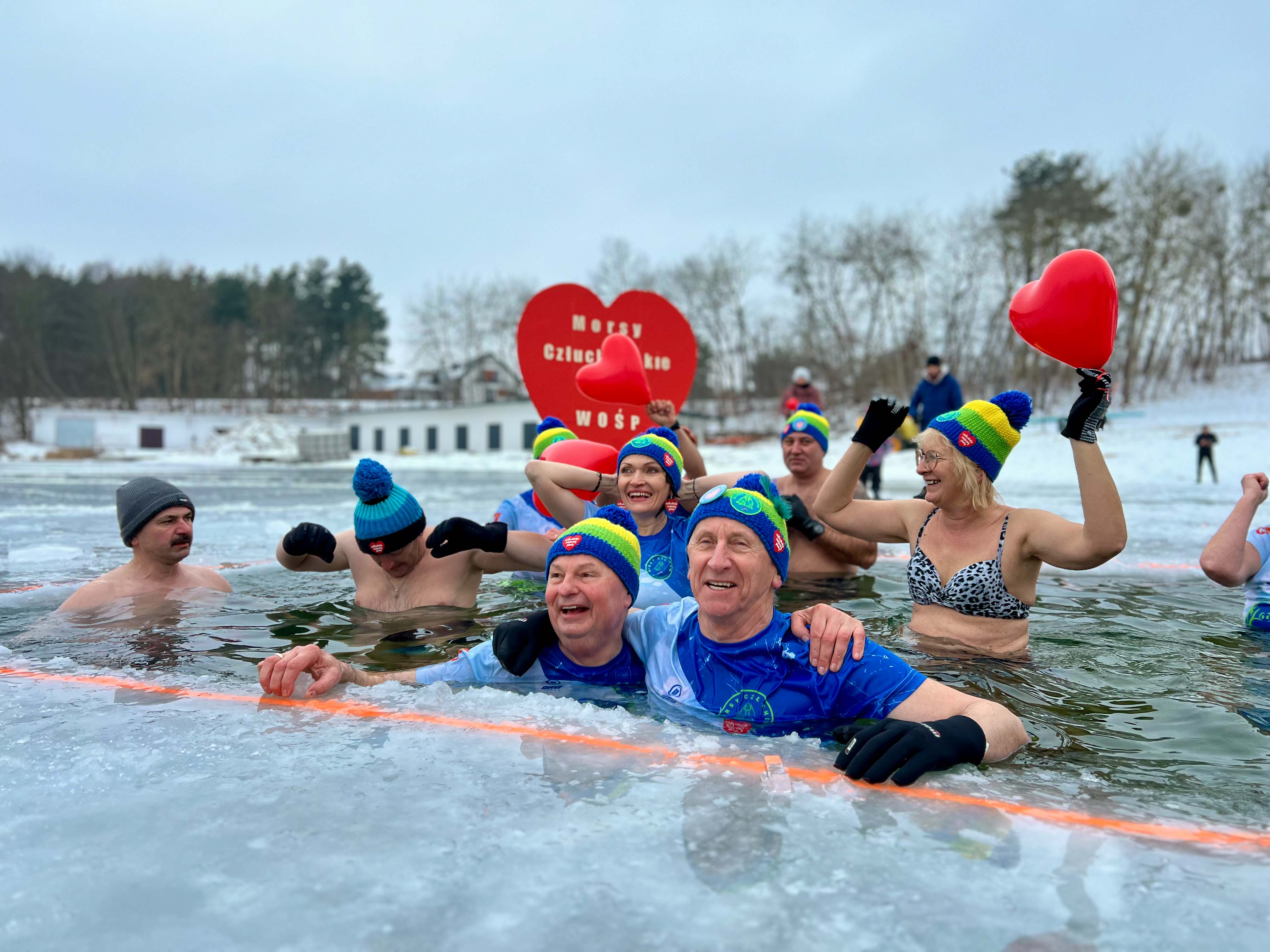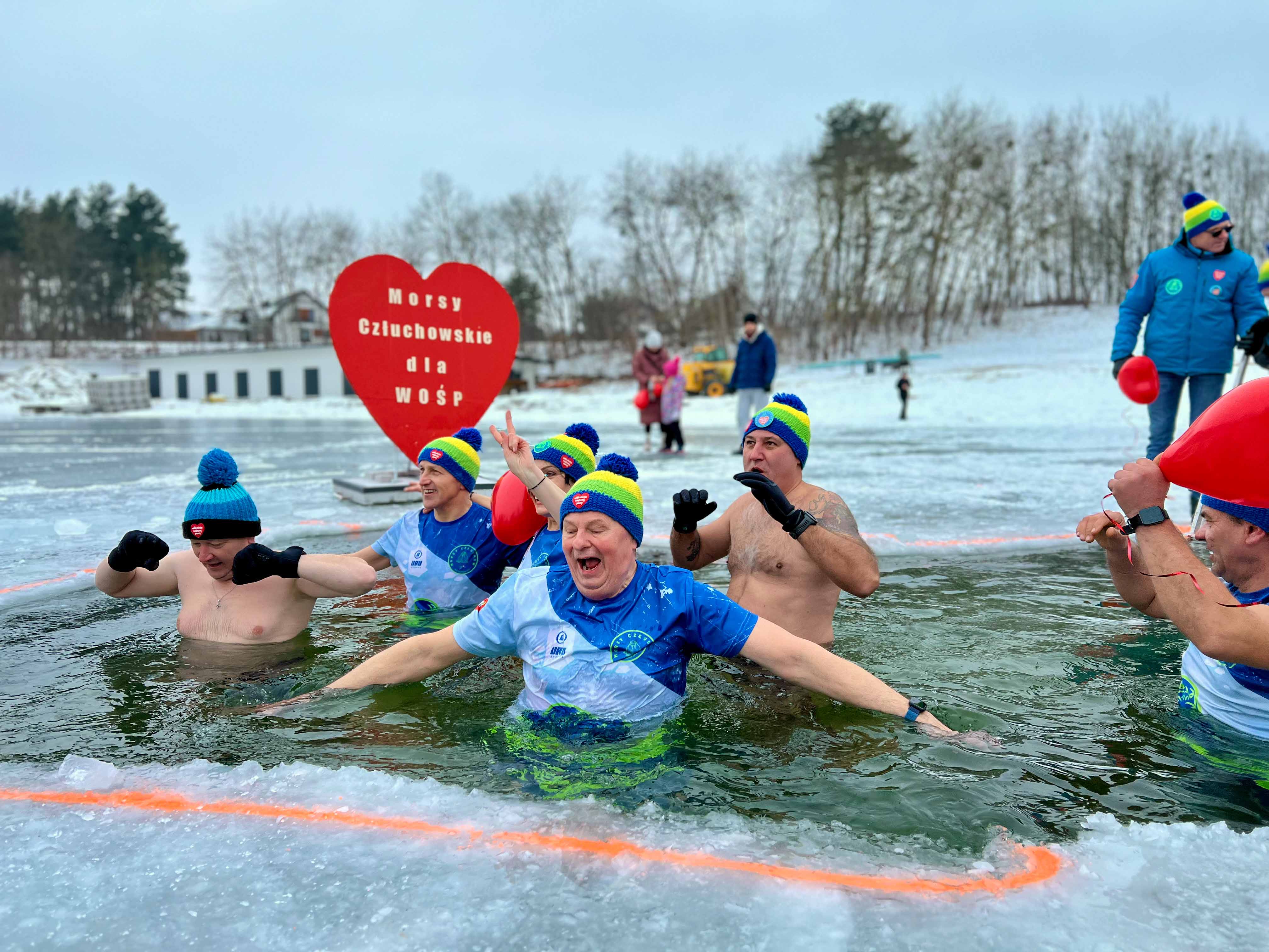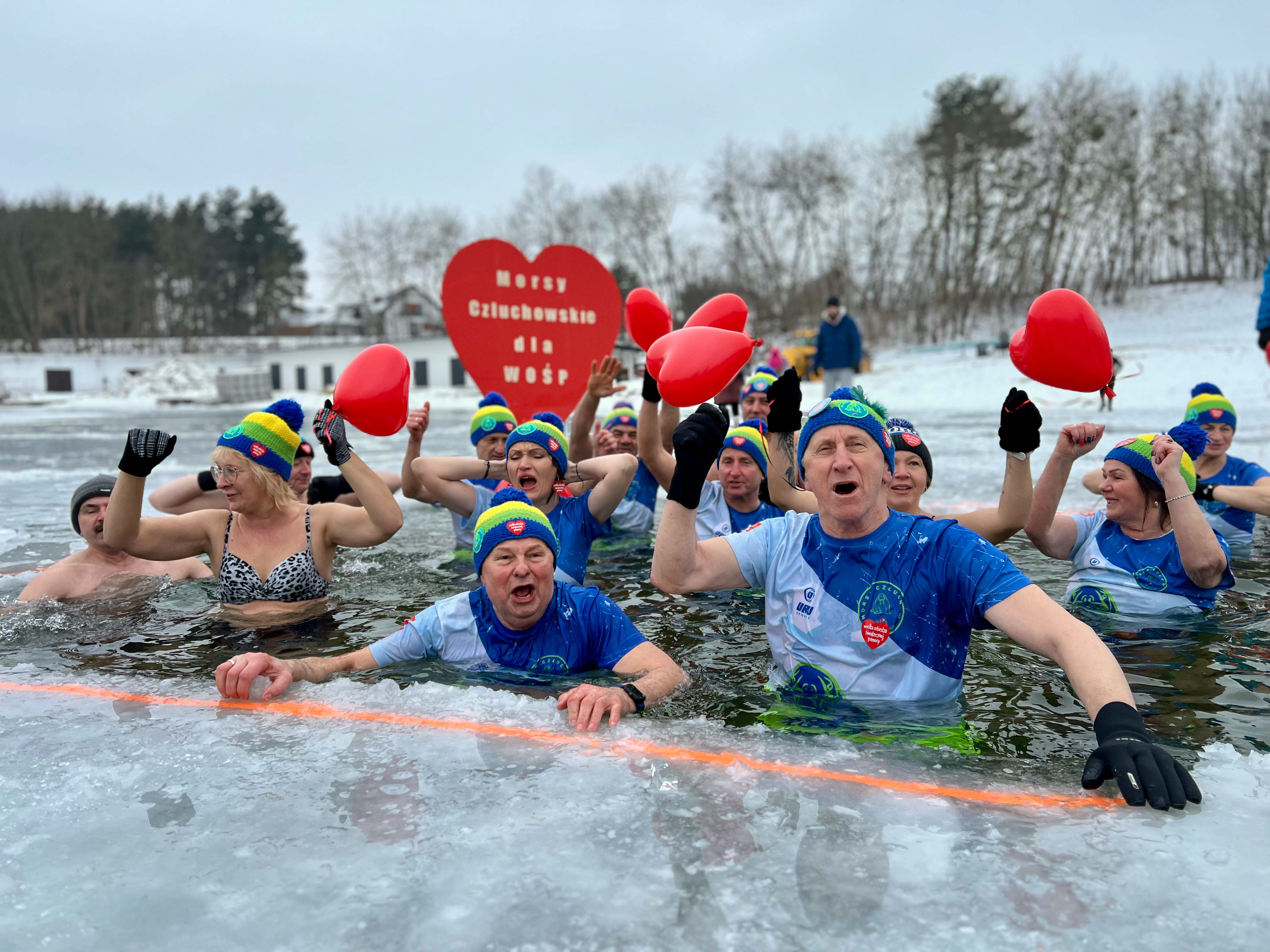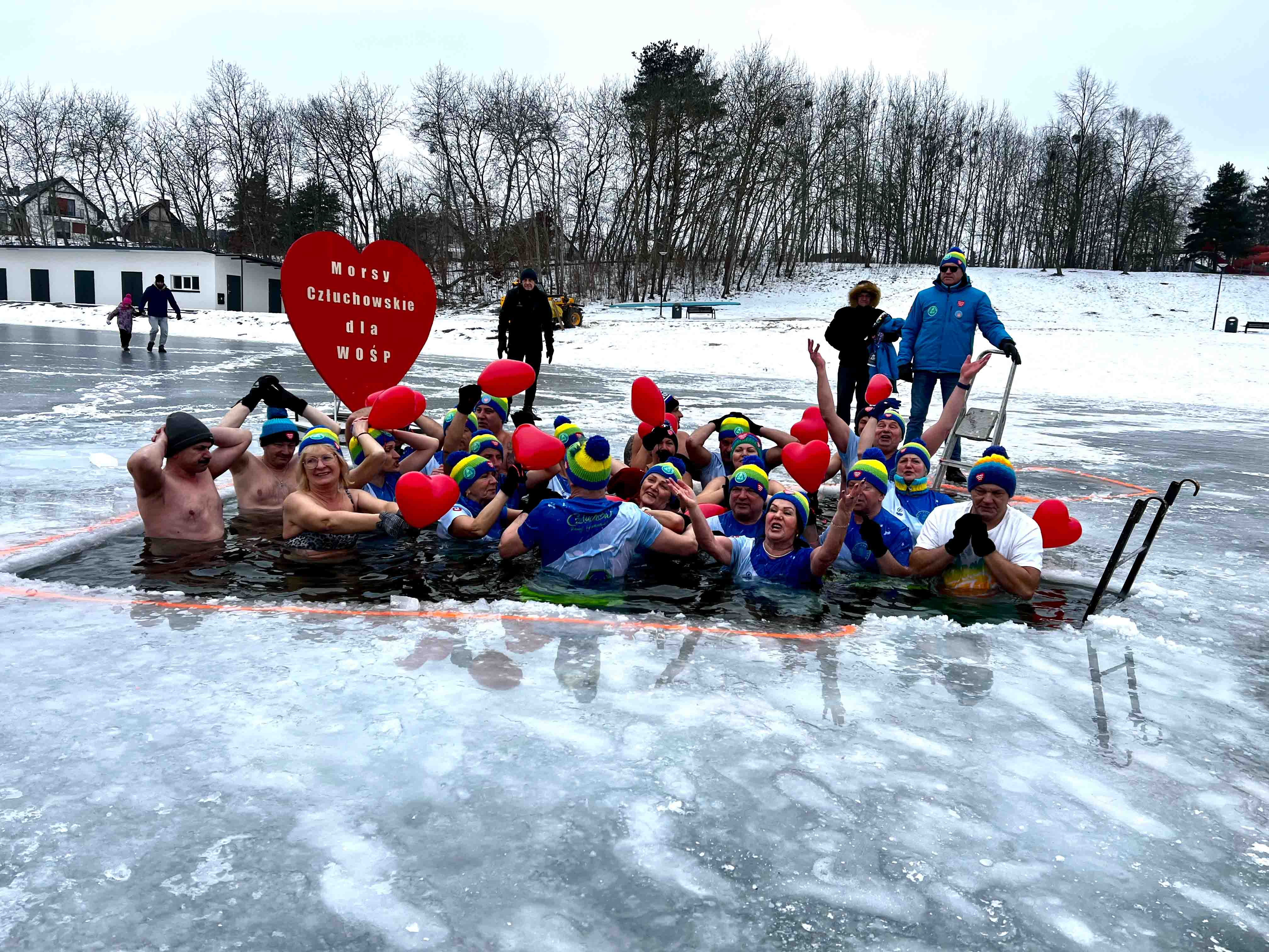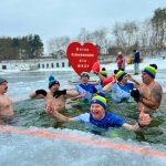 W samo południe dla WOŚP w lodowatej wodzie Jeziora Rychnowskiego zanurzyły się człuchowskie Morsy.
