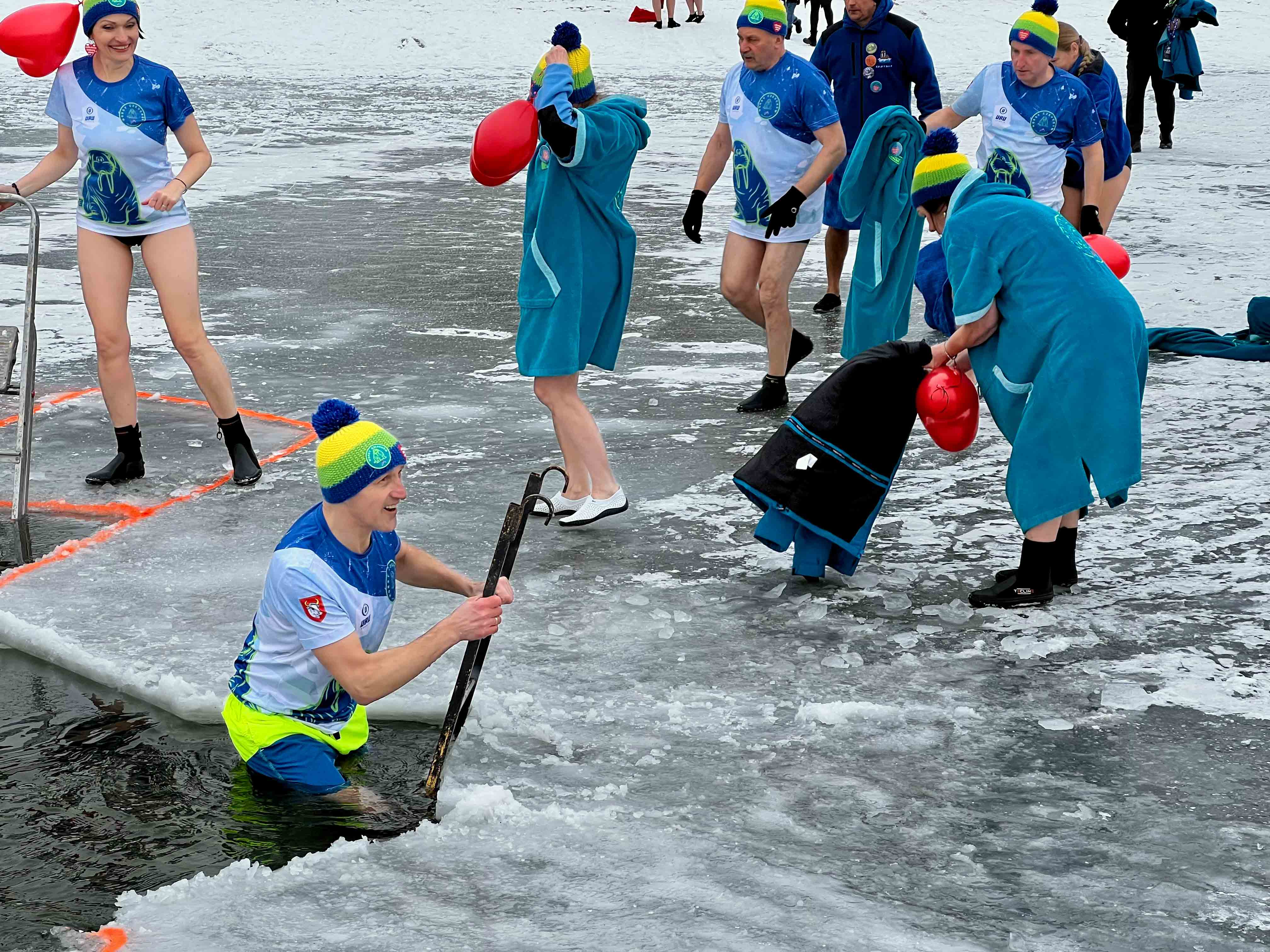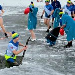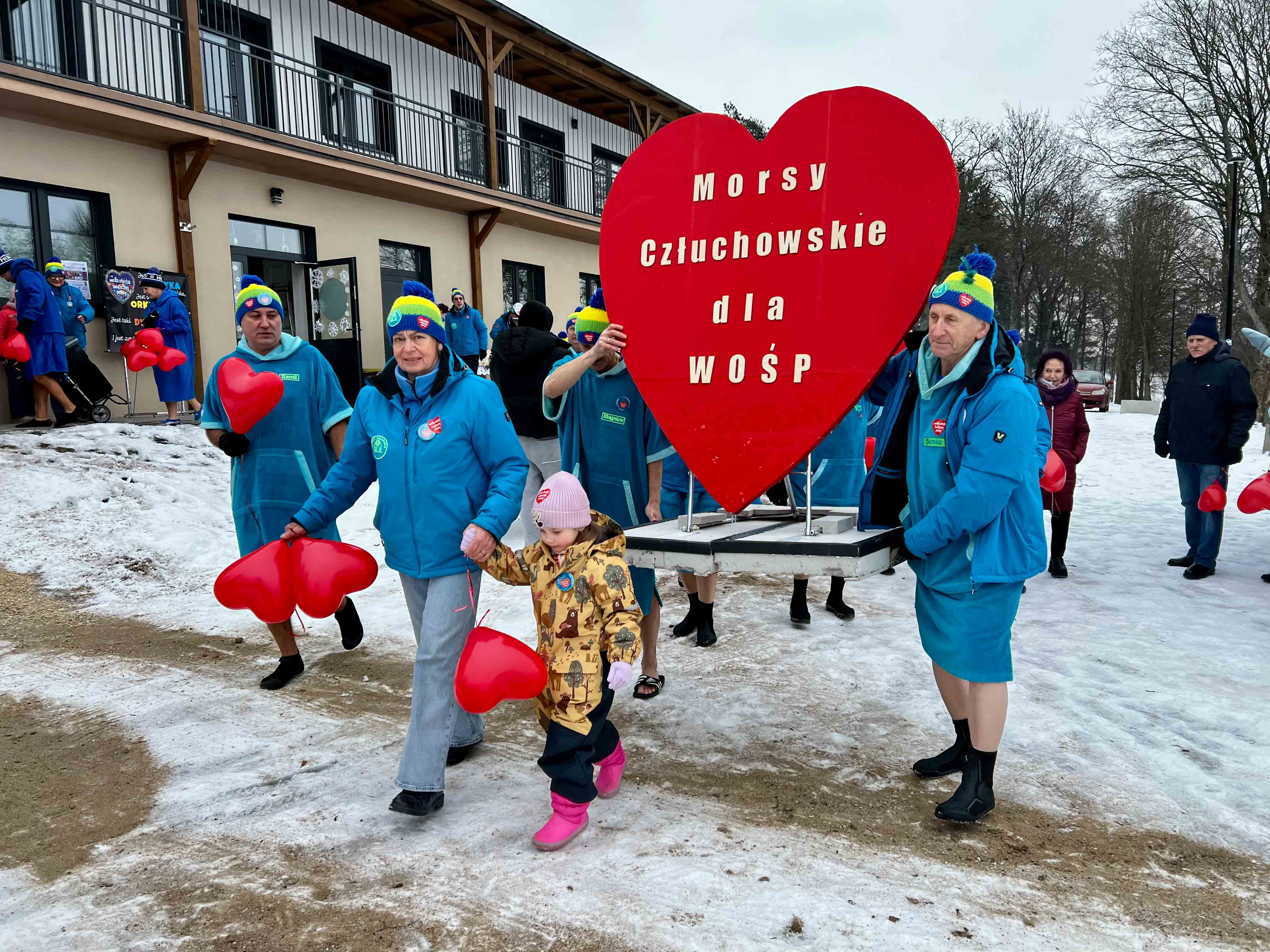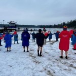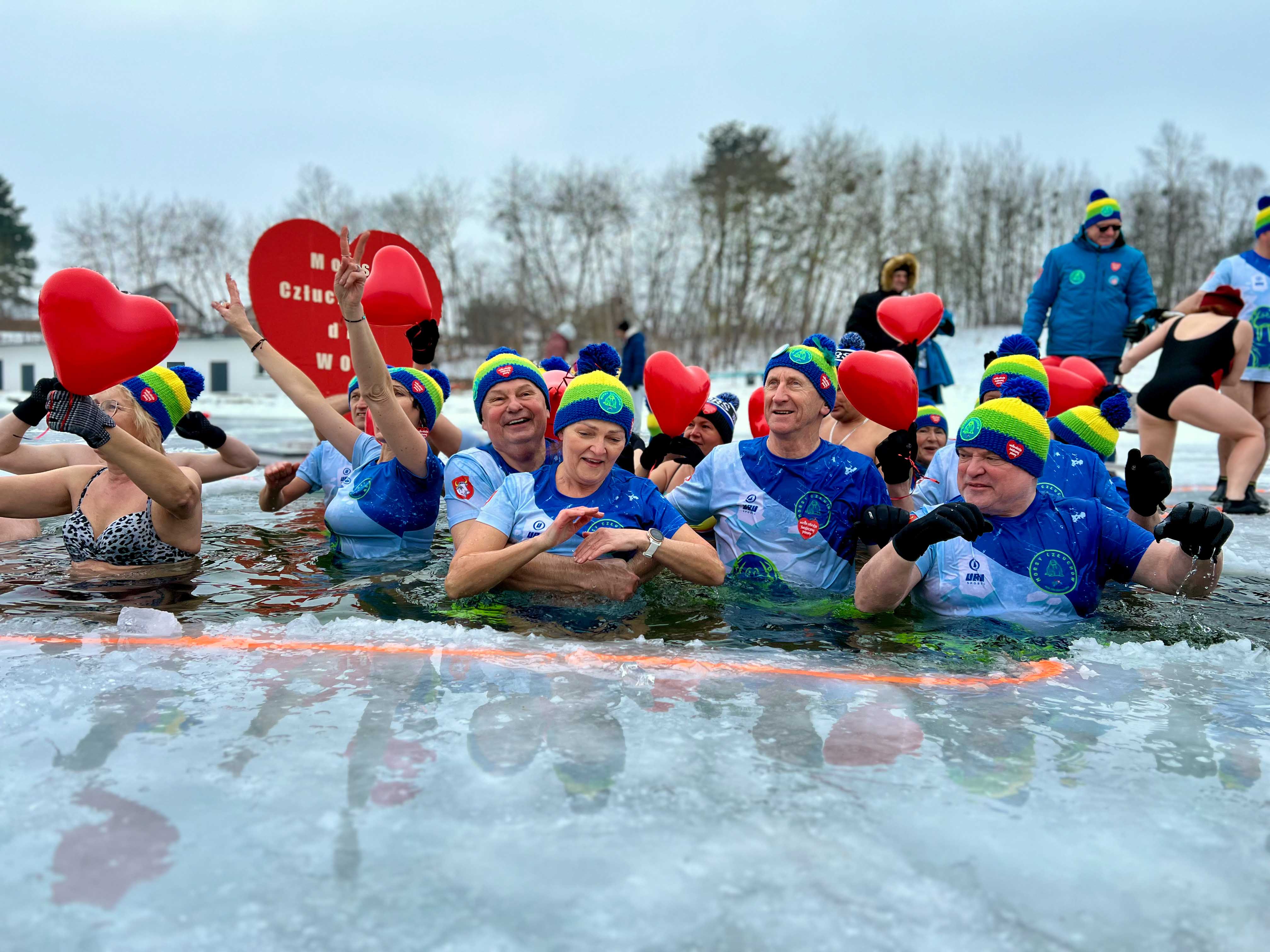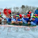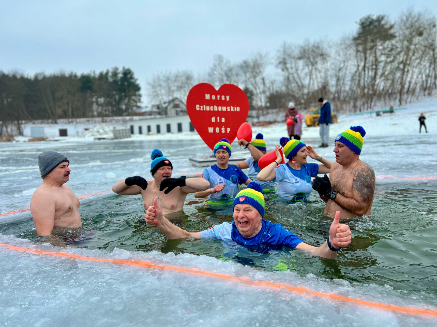 W samo południe dla WOŚP w lodowatej wodzie Jeziora Rychnowskiego zanurzyły się człuchowskie Morsy.