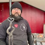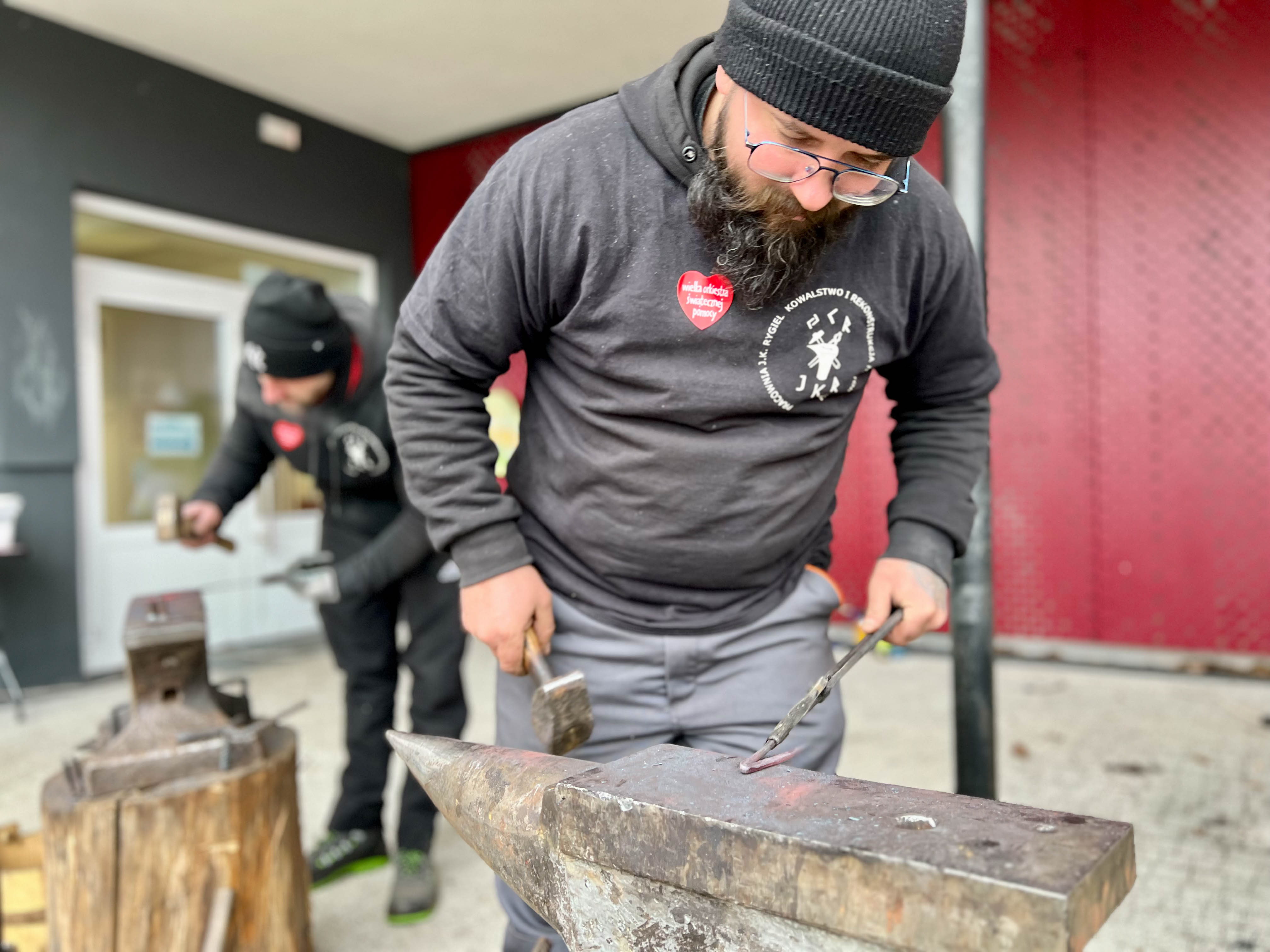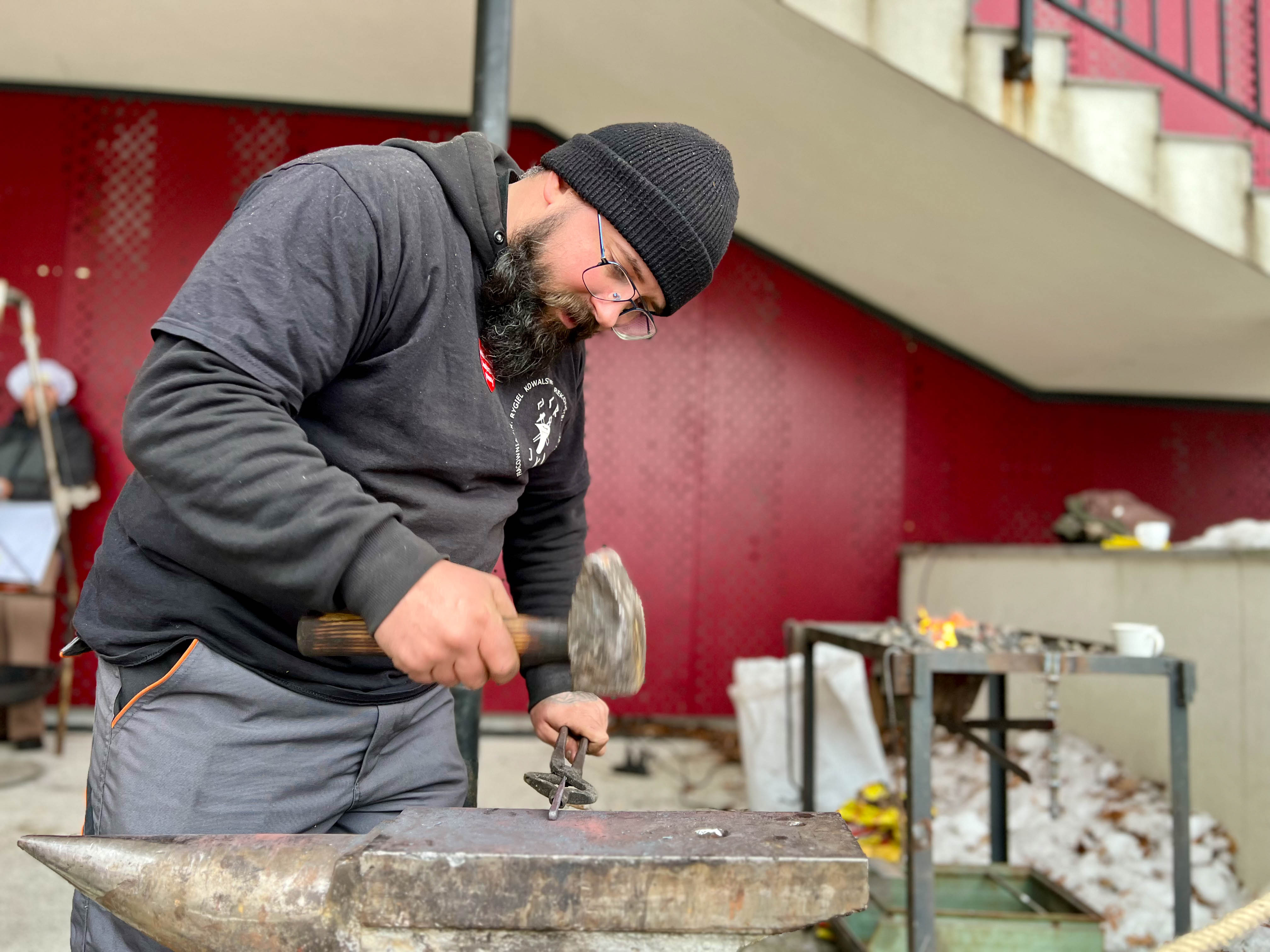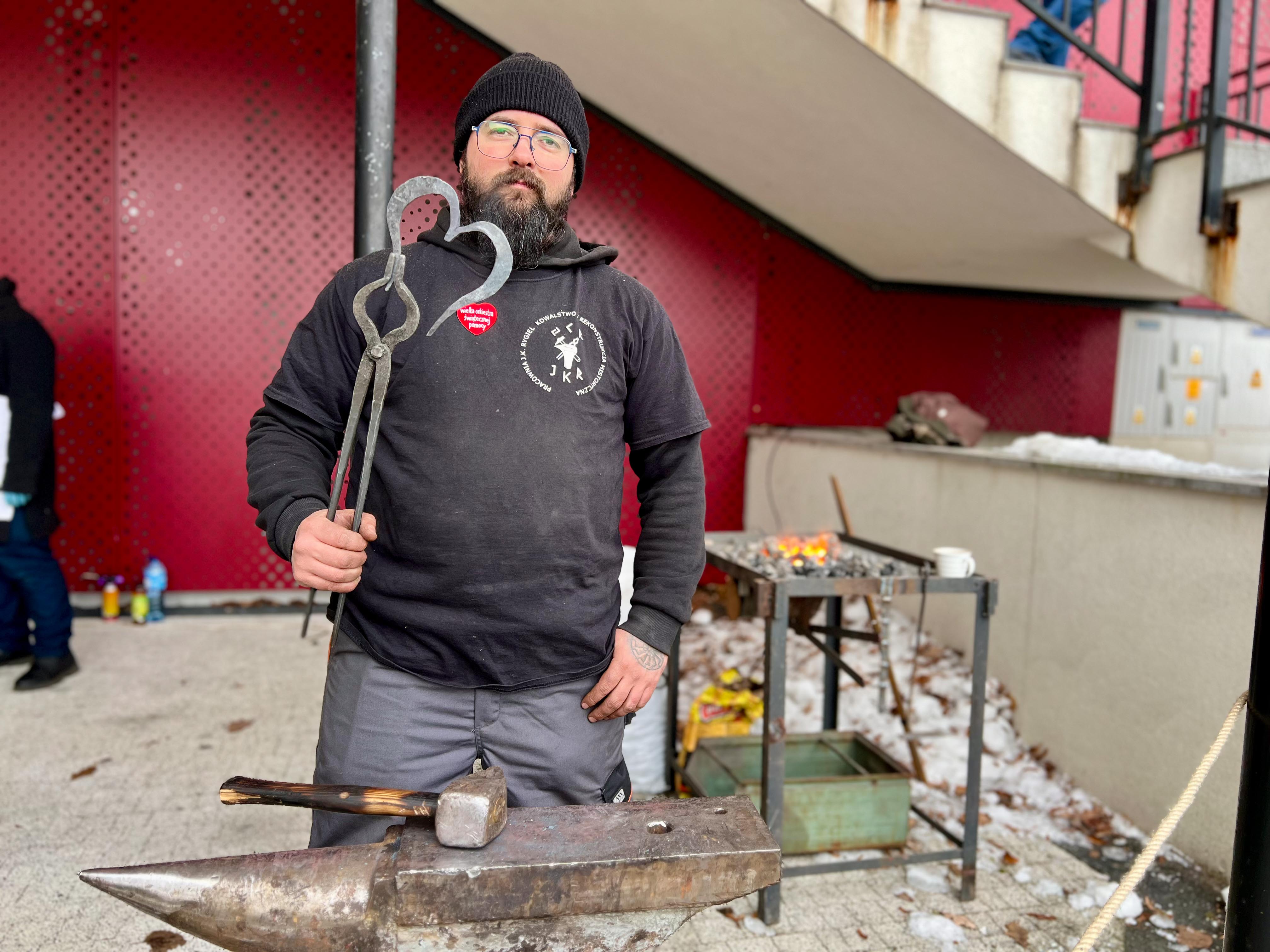 – Kujemy serduszka, mamy prosty pręcik stalowy, rozgrzewamy go do temperatury ok. 950 stopni, zawijamy na rogu, wyklepujemy na bitni i jest gitowe serduszko, zapraszamy wszystkich - mówi kowal Jakub Rygiel.