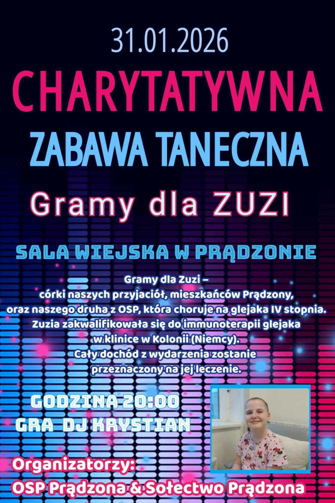 Charytatywna zabawa taneczna w Prądzonie. Można pomóc chorej na nowotwór Zuzi