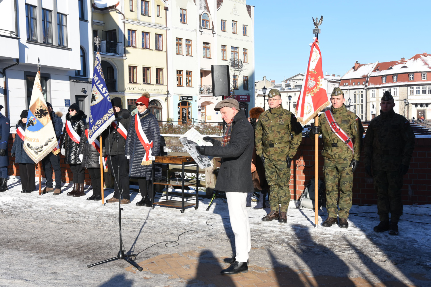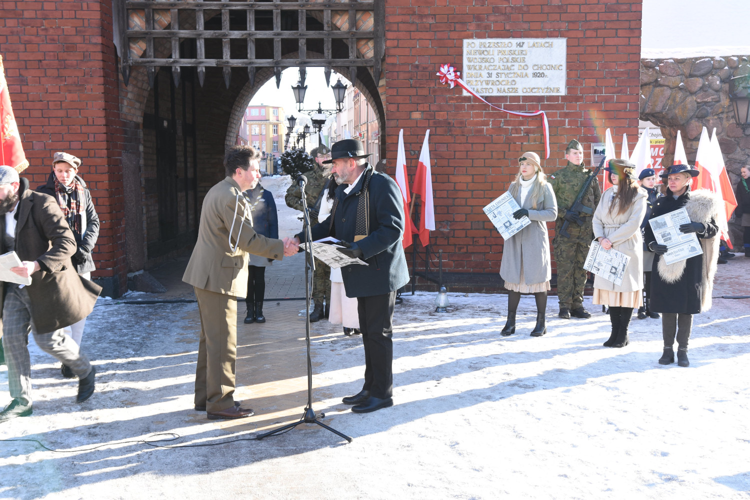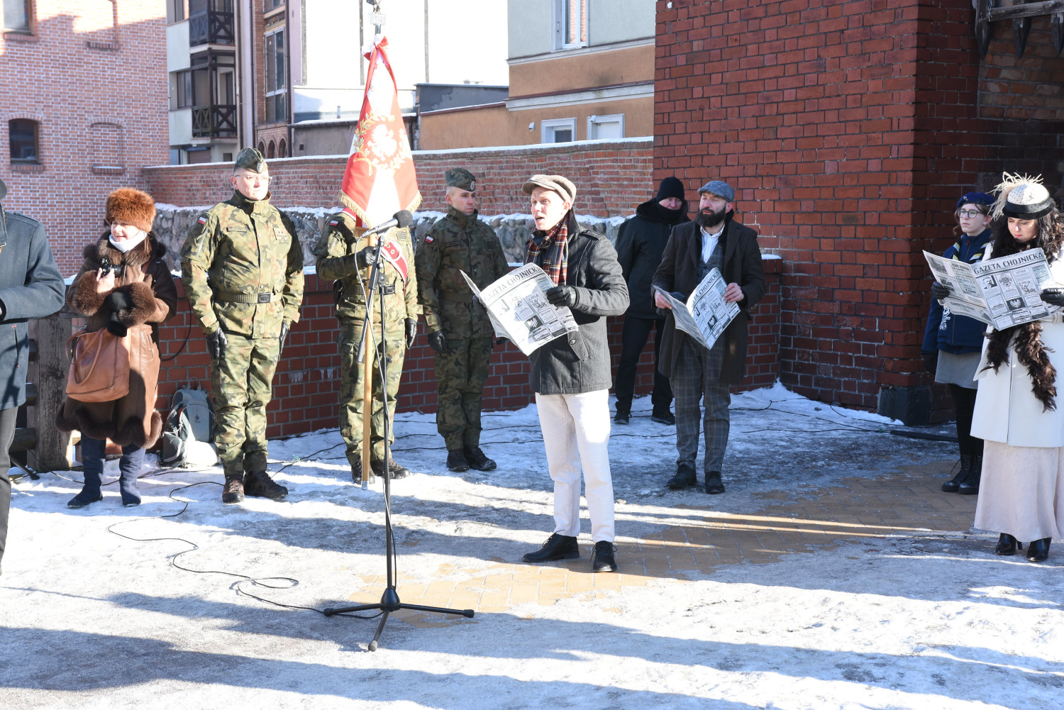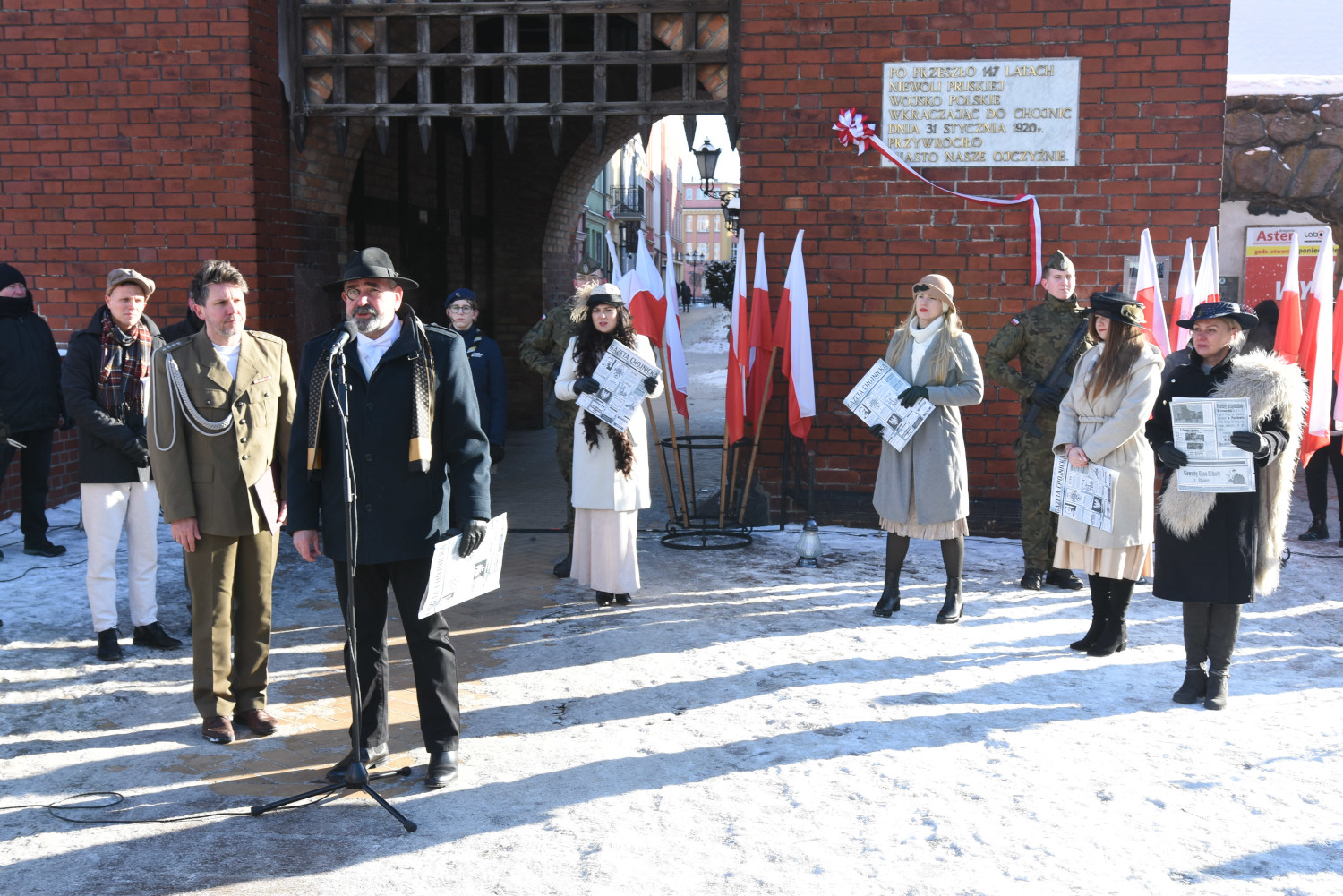Chojnice świętują dzisiaj (31.01) 106. rocznicę powrotu do Macierzy. Pierwszą odsłoną obchodów był uroczysty apel koło Bramy Człuchowskiej. Zebrały się tutaj delegacje, poczty sztandarowe oraz zaproszeni goście. Wśród nich byli parlamentarzyści, samorządowcy oraz wyjątkowo kierownictwo Instytutu Pamięci Narodowej. Aktorzy Projektu 41 odegrali scenę ze swojego spektaklu o przejęciu władzy w mieście przez Alojzego Sobierajczyka. Były też okolicznościowe przemówienia.