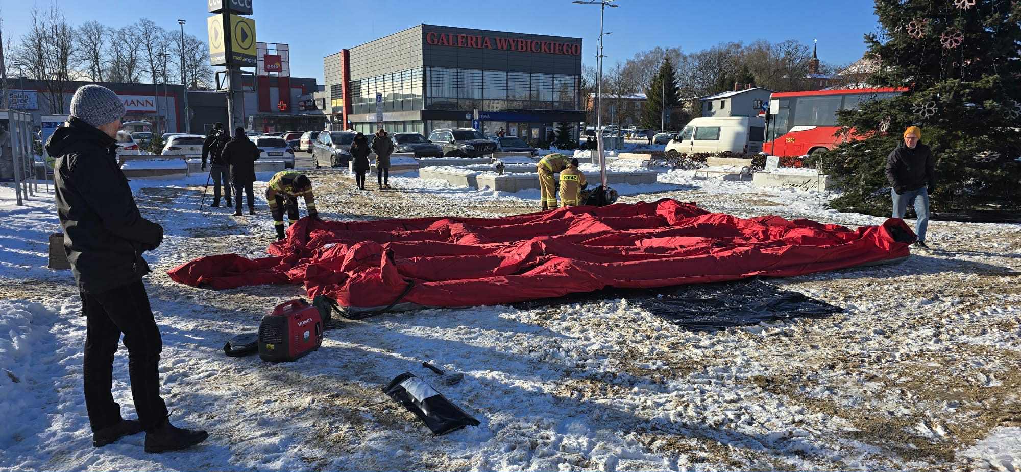 Kościerzyna reaguje na siarczyste mrozy. Na węźle komunikacyjnym przy pomniku Józefa Wybickiego stanął namiot pneumatyczny wyposażony w nagrzewnice. Sprzęt zakupiono w ramach dotacji z Programu Ochrony Ludności i Obrony Cywilnej.