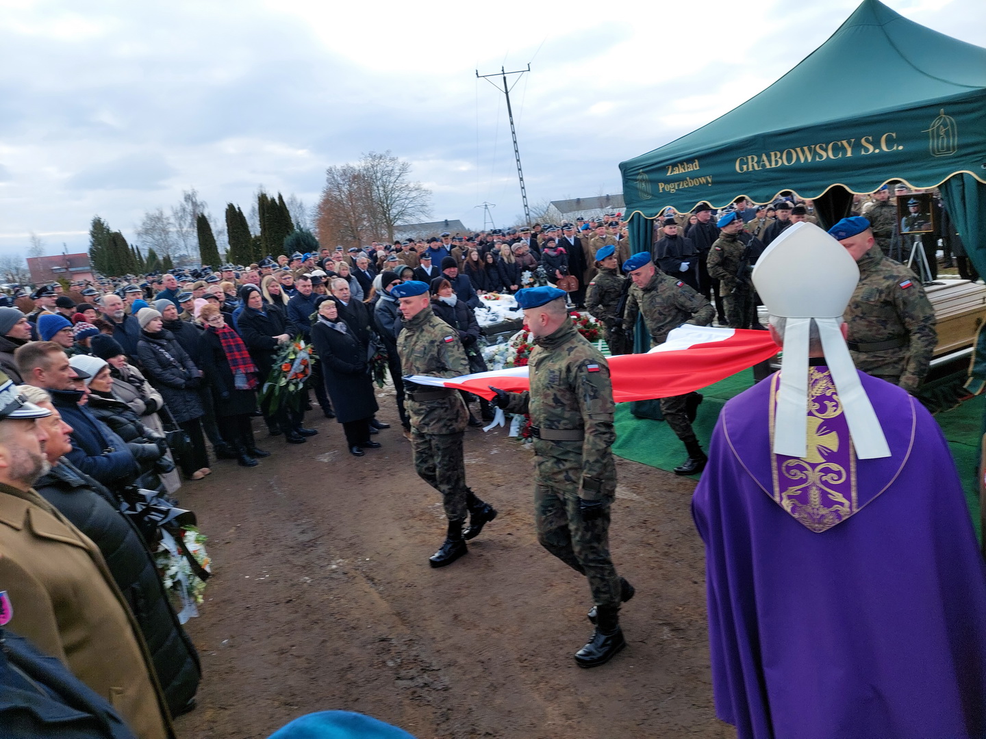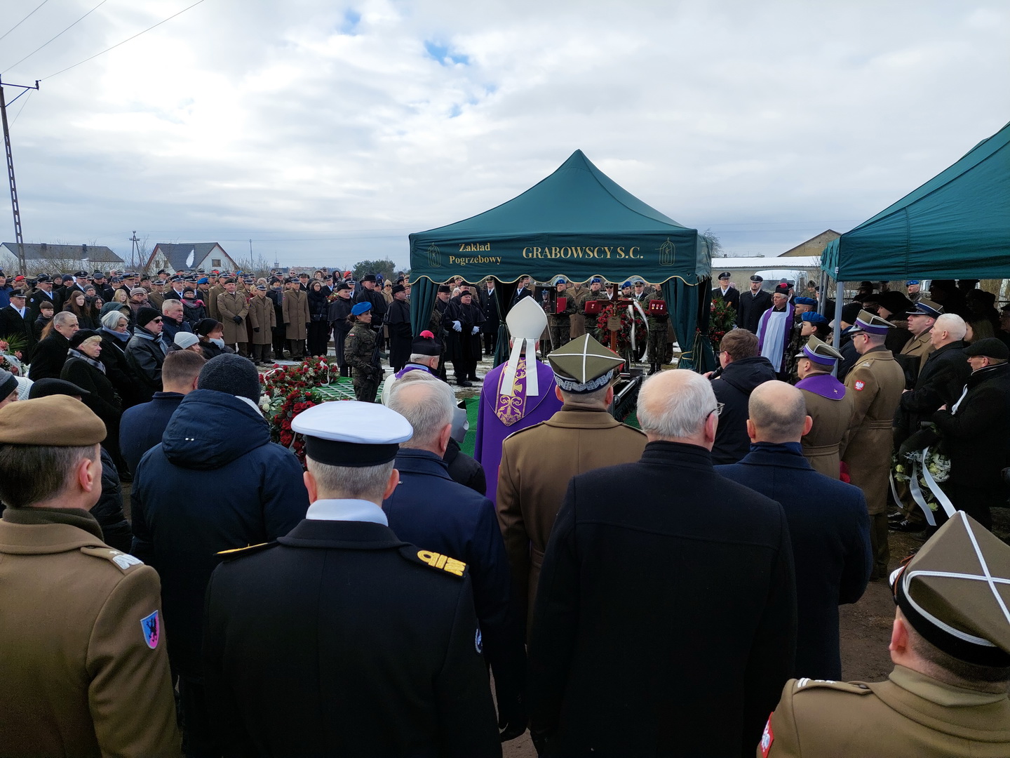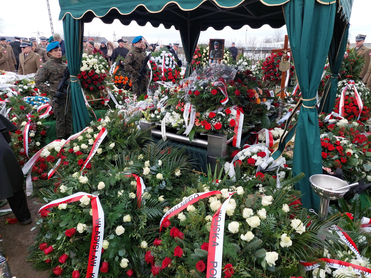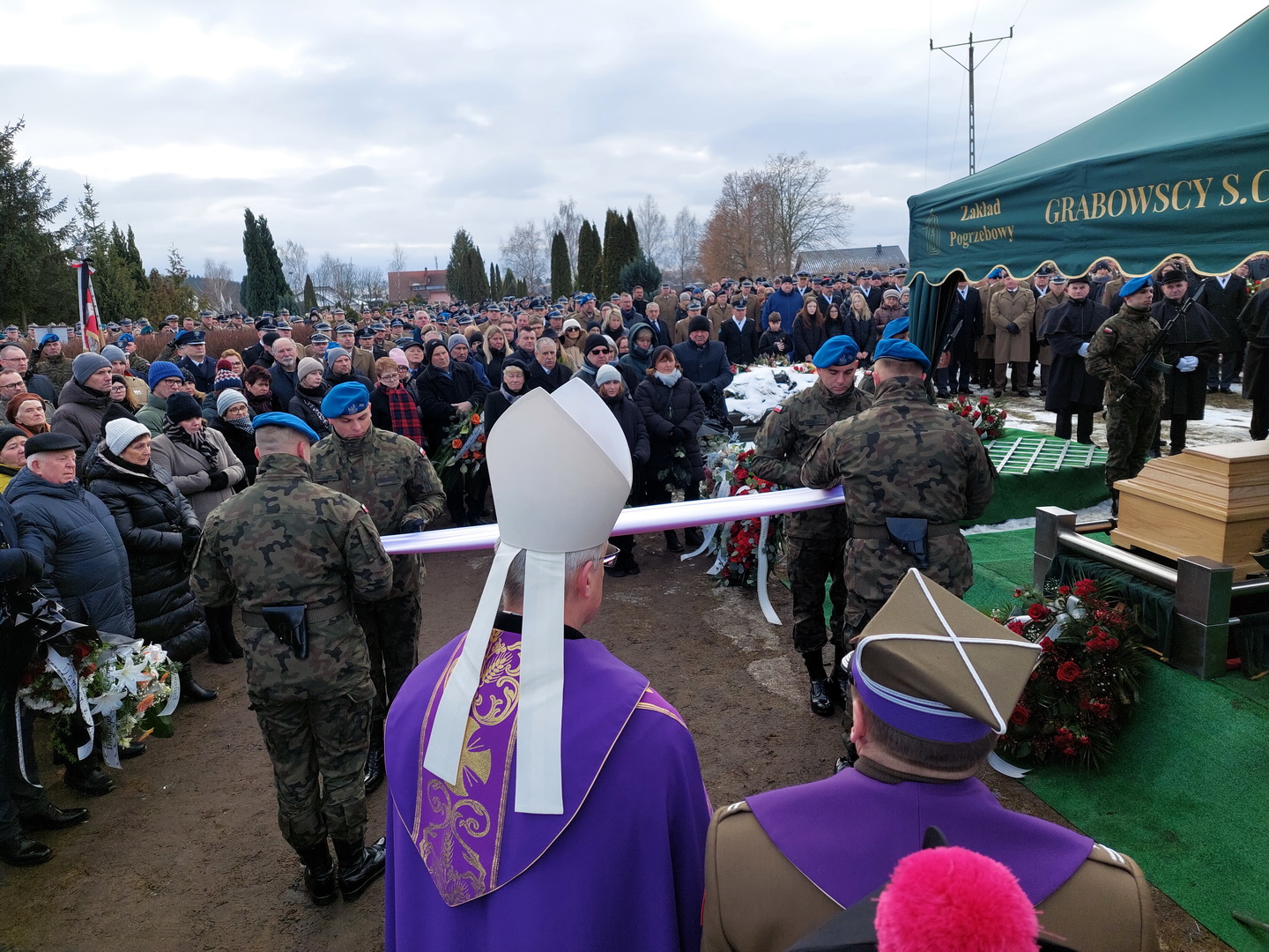 Przyjmijcie od kierownictwa Inspektoratu Wsparcia Sił Zbrojnych oraz blisko 38-tysięcznej rzeszy naszych pracowników i żołnierzy służących zarówno w kraju, jak i poza granicami państwa, najszczersze wyrazy współczucia. Ty Piotrze na zawsze zostaniesz w naszej pamięci. Żegnamy Cię najlepiej jak potrafimy, prosto, po żołniersku. Ostatnim honorem oddanym ci przez pokryte kirem sztandary.