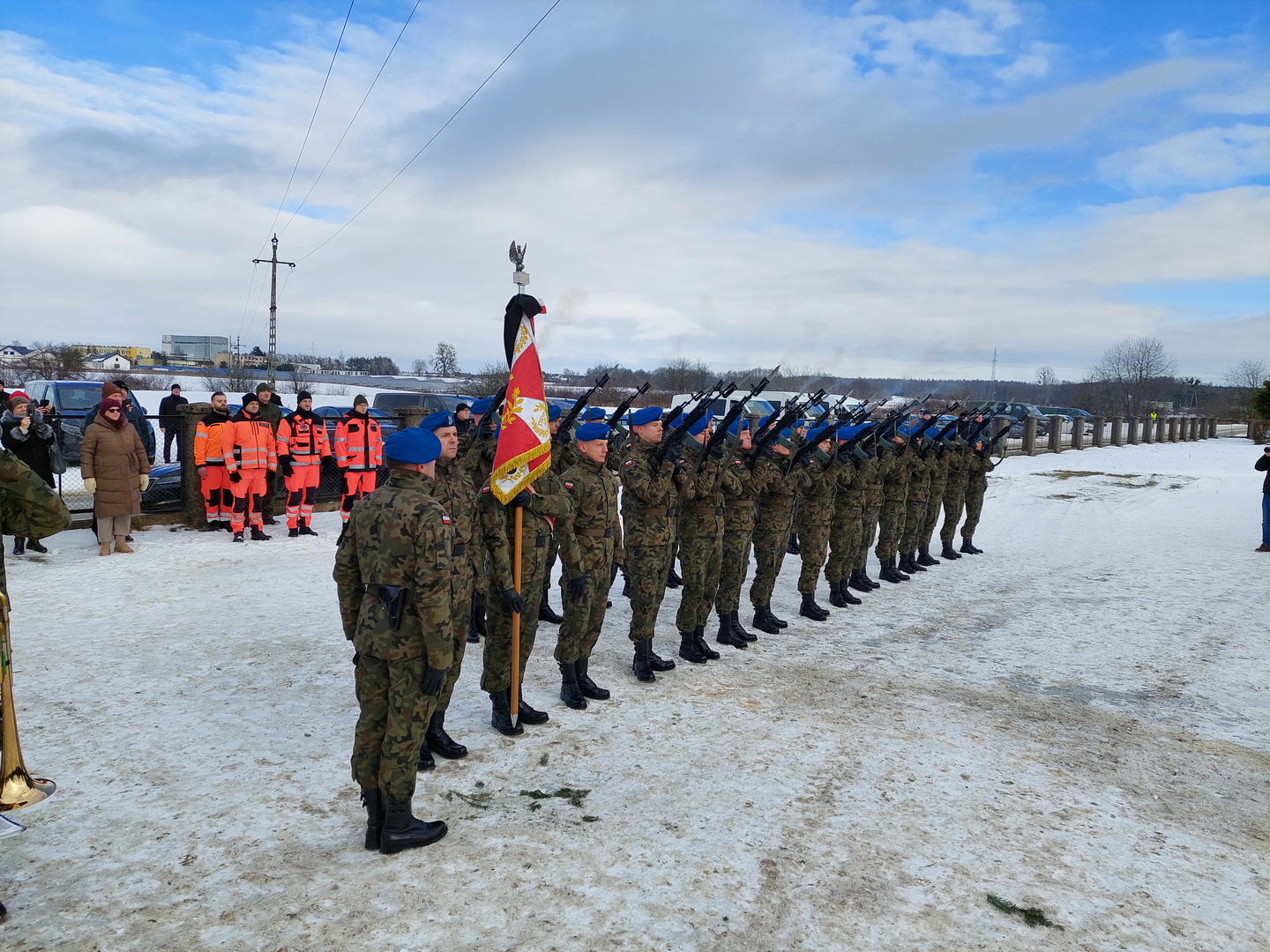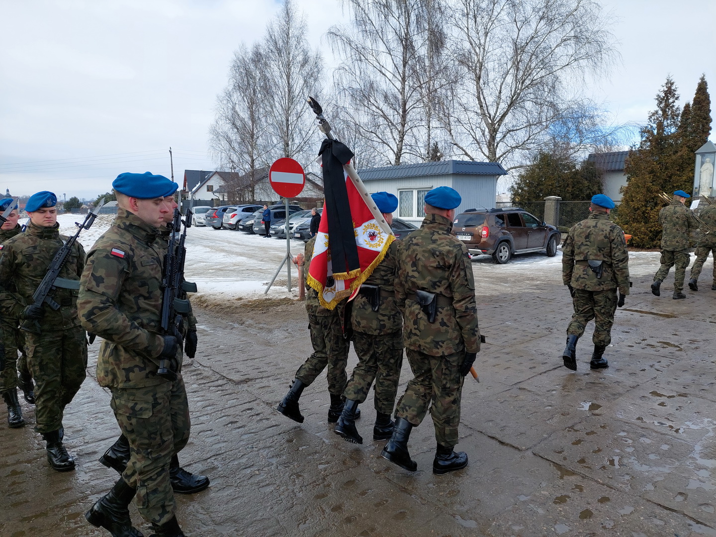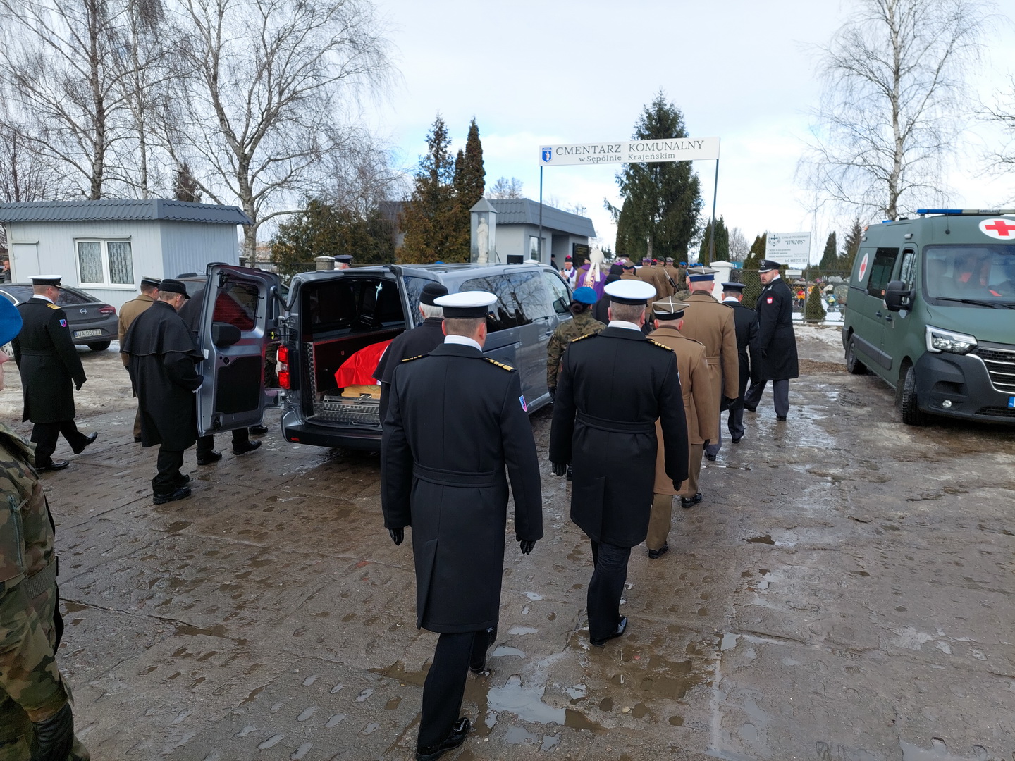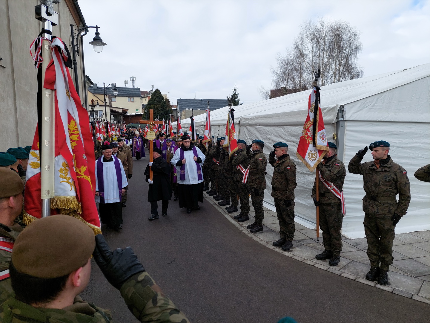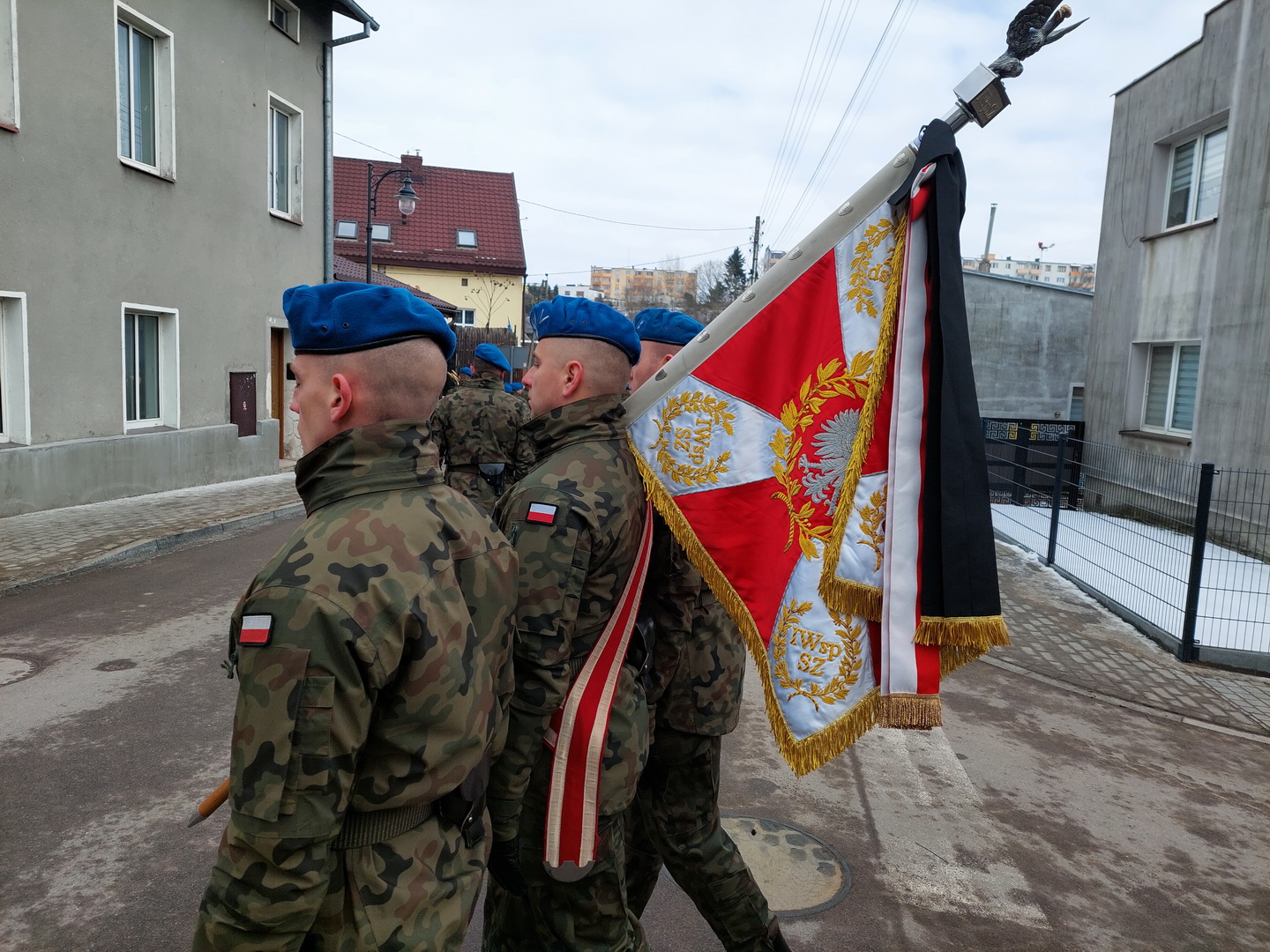 Przyjmijcie od kierownictwa Inspektoratu Wsparcia Sił Zbrojnych oraz blisko 38-tysięcznej rzeszy naszych pracowników i żołnierzy służących zarówno w kraju, jak i poza granicami państwa, najszczersze wyrazy współczucia. Ty Piotrze na zawsze zostaniesz w naszej pamięci. Żegnamy Cię najlepiej jak potrafimy, prosto, po żołniersku. Ostatnim honorem oddanym ci przez pokryte kirem sztandary.