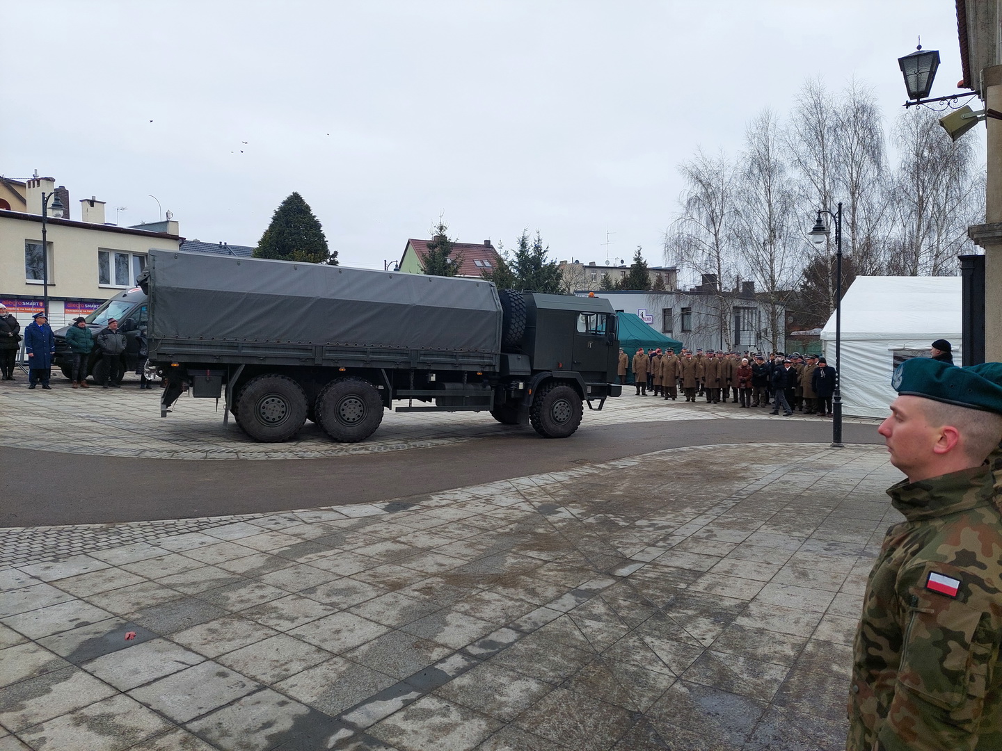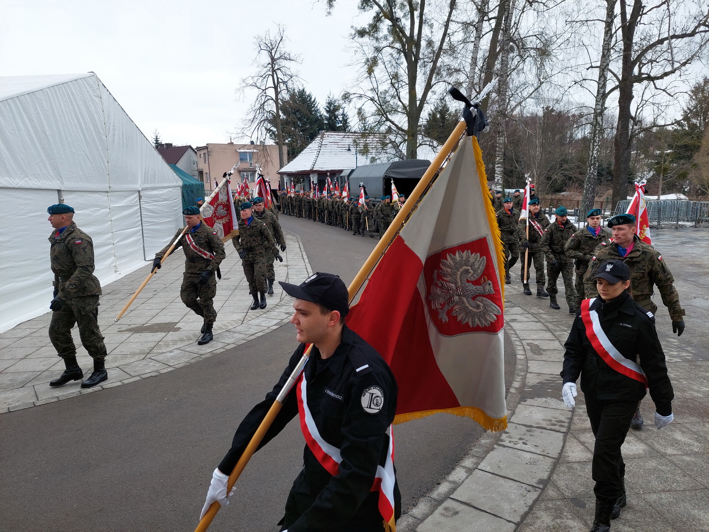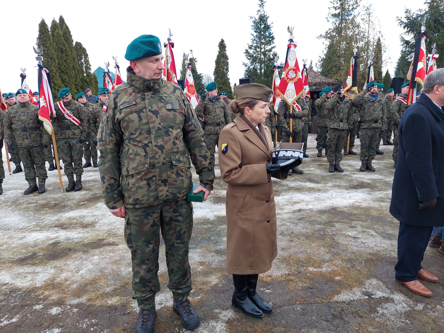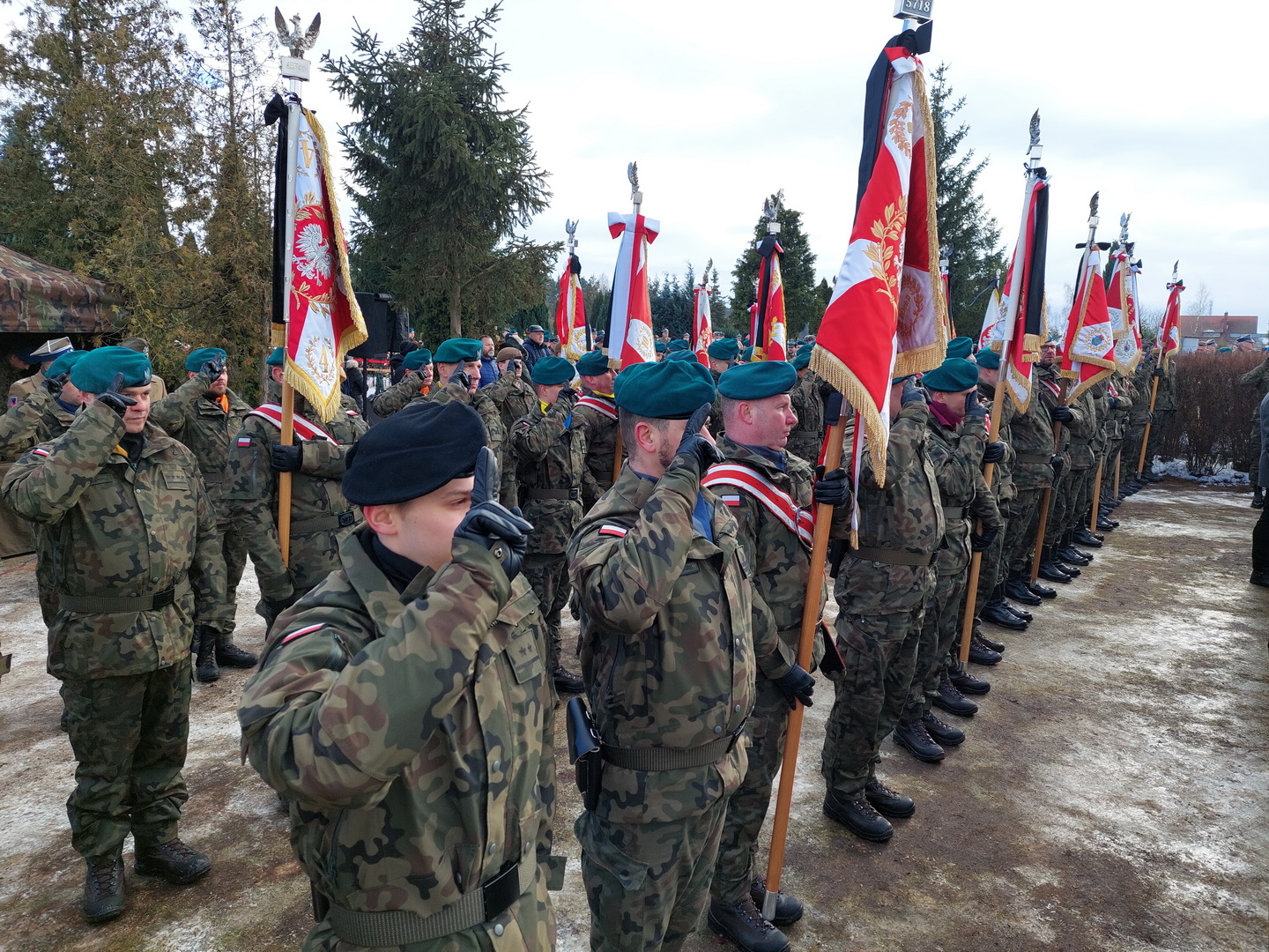 Przyjmijcie od kierownictwa Inspektoratu Wsparcia Sił Zbrojnych oraz blisko 38-tysięcznej rzeszy naszych pracowników i żołnierzy służących zarówno w kraju, jak i poza granicami państwa, najszczersze wyrazy współczucia. Ty Piotrze na zawsze zostaniesz w naszej pamięci. Żegnamy Cię najlepiej jak potrafimy, prosto, po żołniersku. Ostatnim honorem oddanym ci przez pokryte kirem sztandary.