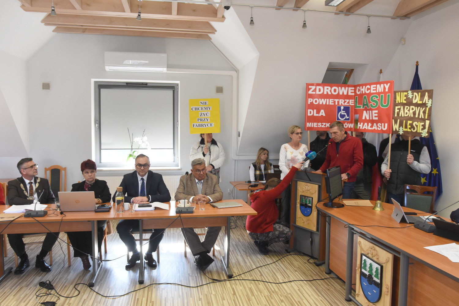 Stanowczy sprzeciw mieszkańców wobec rozbudowy zakładu w Rytlu. Pikieta przed ratuszem i wystąpienie na sesji (FOTO)