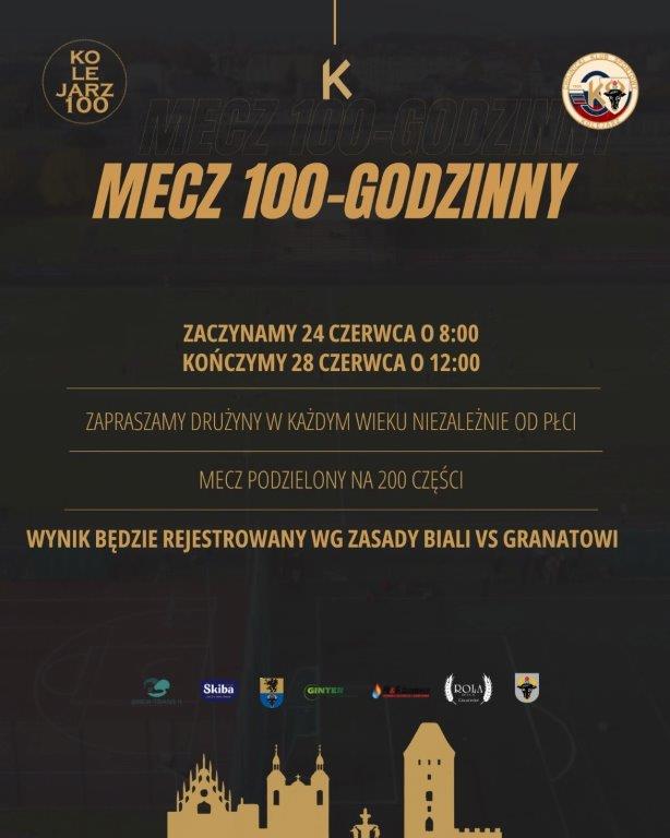 Na ten pomysł wpadł Olek Knitter, kiedy jeszcze był w zarządzie. Chcemy zorganizować mecz, który bez przerw będzie trwał 100 godzin. Do uczestnictwa zapraszamy wszystkich, niekoniecznie to muszą być zrzeszone jakieś towarzystwa, kluby, organizacje. Mogą być to dzieci, mogą być to same panie.