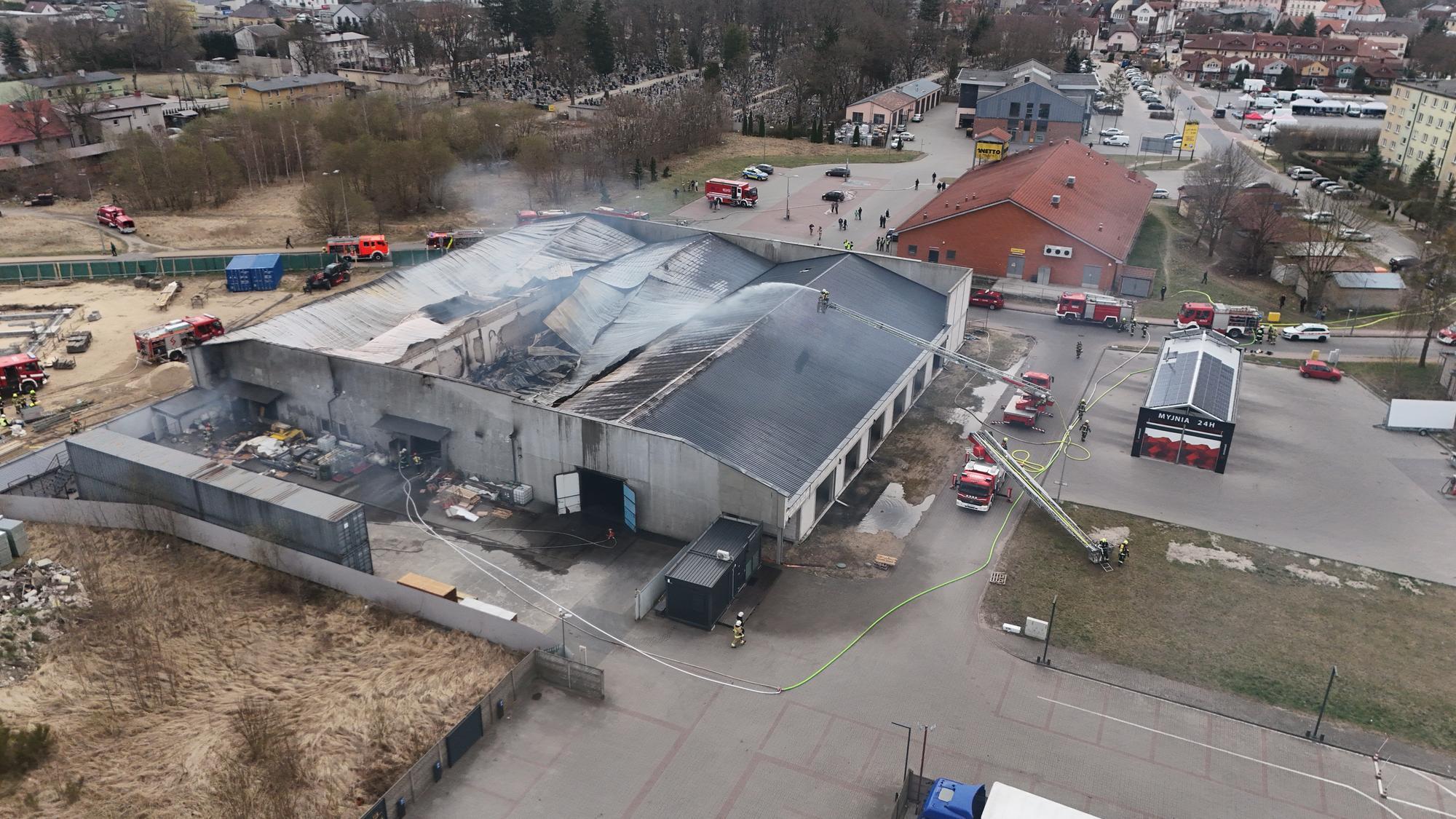 Na miejsce zdarzenia zadysponowano na tę chwilę łącznie 20 zastępów, w tym są siły i środki też w postaci przyczep, ale też specjalistyczna grupa ratownictwa chemicznego, a także samochód specjalny "gaz". W tej chwili uśredniając mniej więcej 60 strażaków na miejscu zdarzenia. Ze względu na te kłęby czarnego dymu podjęto decyzję o ewakuacji pobliskiego osiedla.