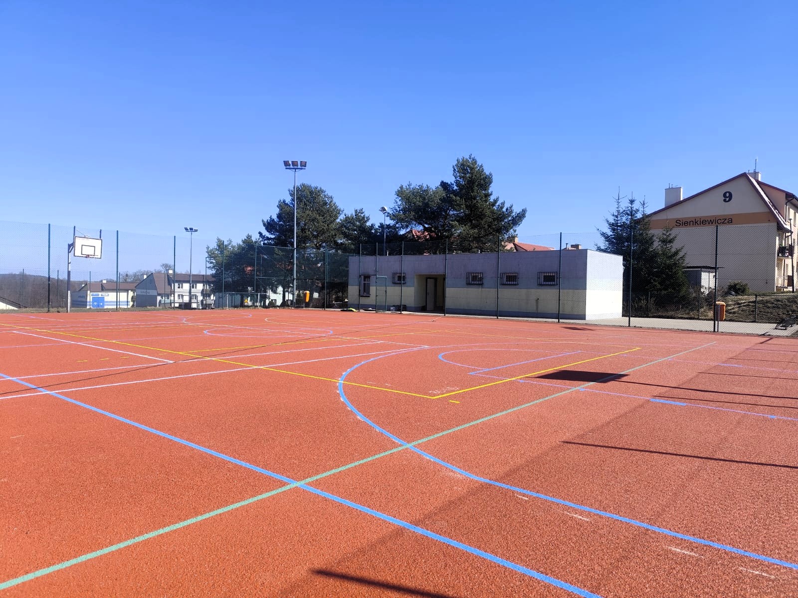 Boisko wielofunkcyjne zyskało nową bezpieczną nawierzchnię poliuretanową oraz nowe wyposażenie, co też ważne: kosze do koszykówki, bramki, siatkę do tenisa. Dzięki tej modernizacji mieszkańcy mają jeszcze lepsze warunki do uprawiania sportu, aktywnego spędzania czasu. Zachęcam wszystkich mieszkańców do korzystania z tego obiektu.