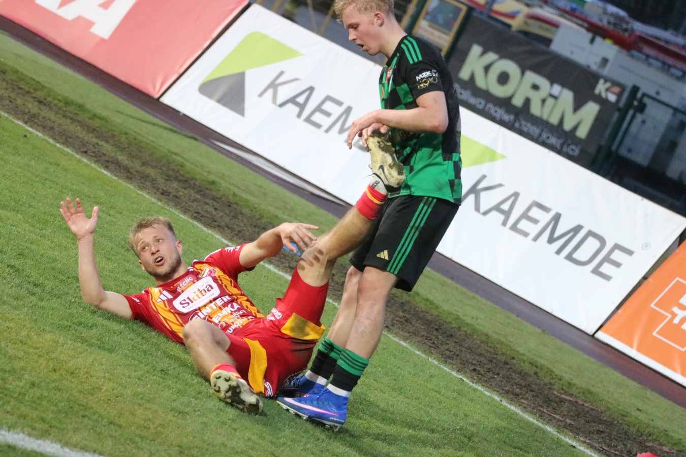 W pierwszej połowie nasz drugoligowiec dwukrotnie wychodził na prowadzenie po trafieniach Marcina Koziny i Valerijsa Sabali. W drugiej w ciągu kilku minut padły trzy bramki – najpierw dwie dla gości, a potem wyrównująca Patryka Olejnika.