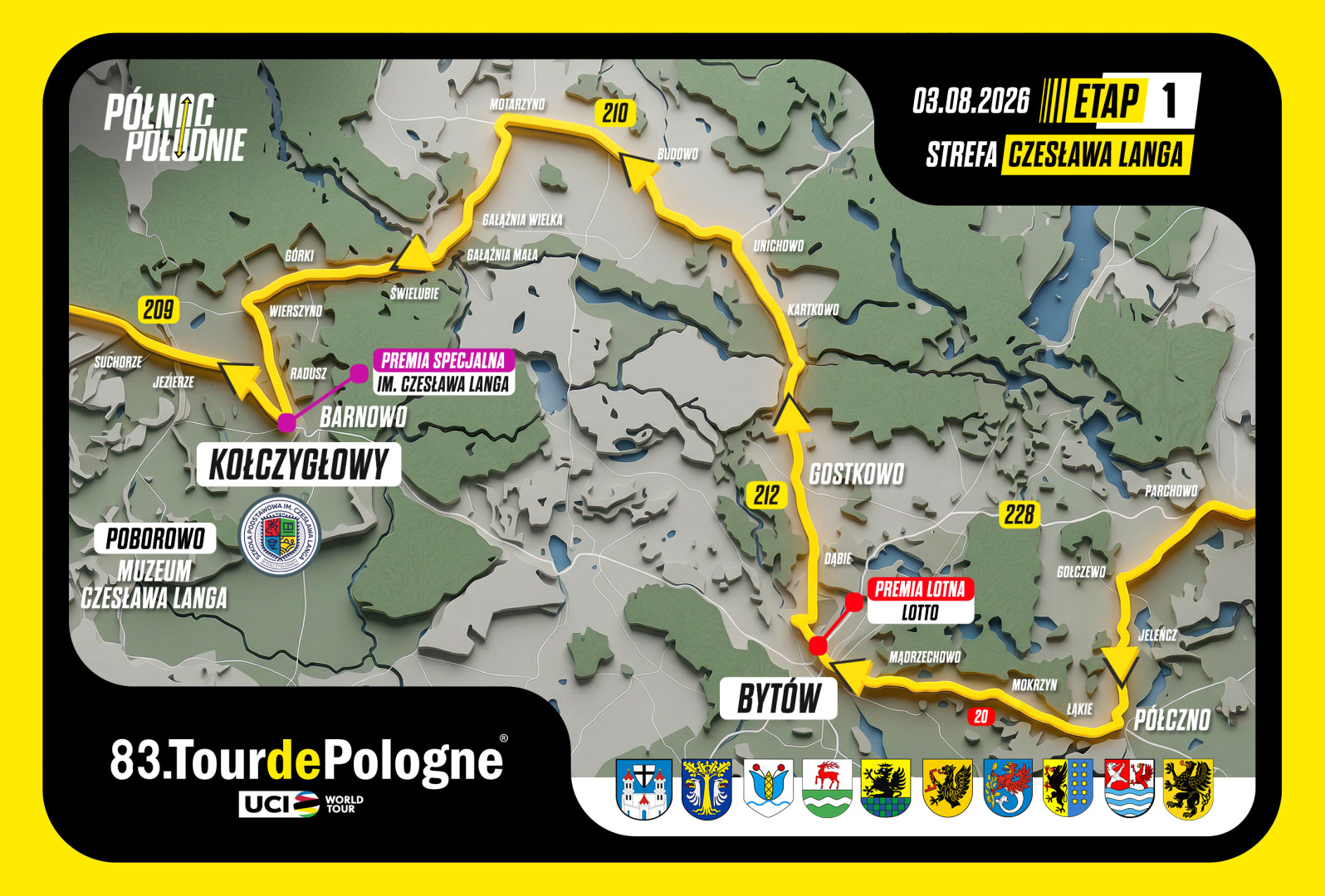 Zacznie się w Parchowie i prowadzić będzie przez Półczno, Bytów, Gostkowo, Unichowo, Motarzyno, Gałąźnię Wielką, Barnowo do Kołczygłów. Tak przebiegać będzie przez powiat bytowski sektor Czesława Langa – fragment pierwszego etapu tegorocznego Tour de Pologne.