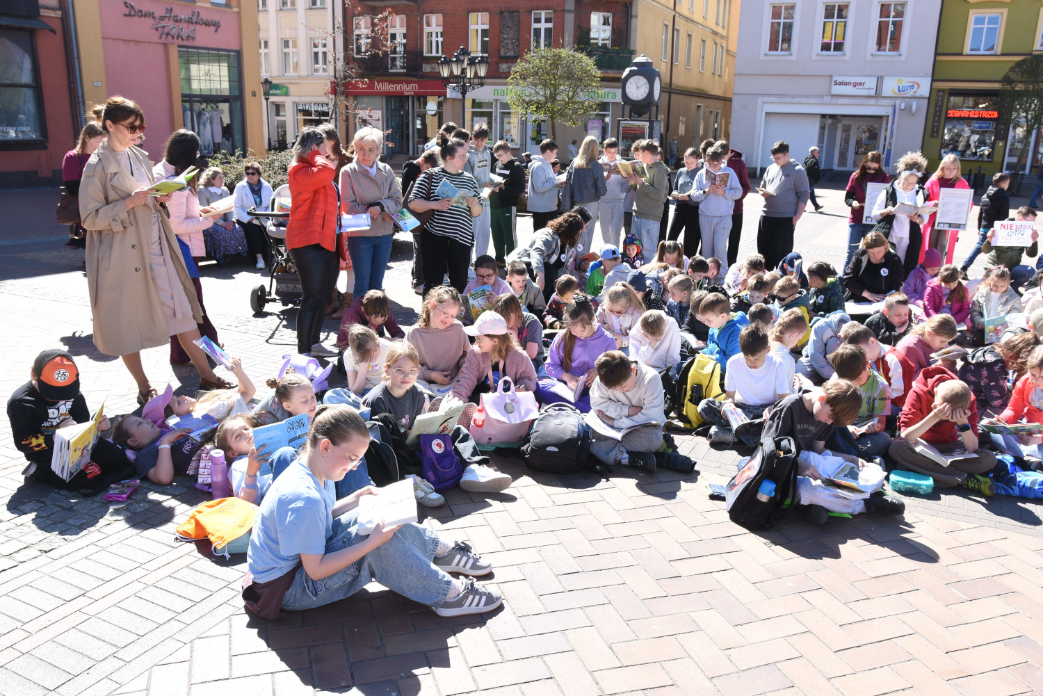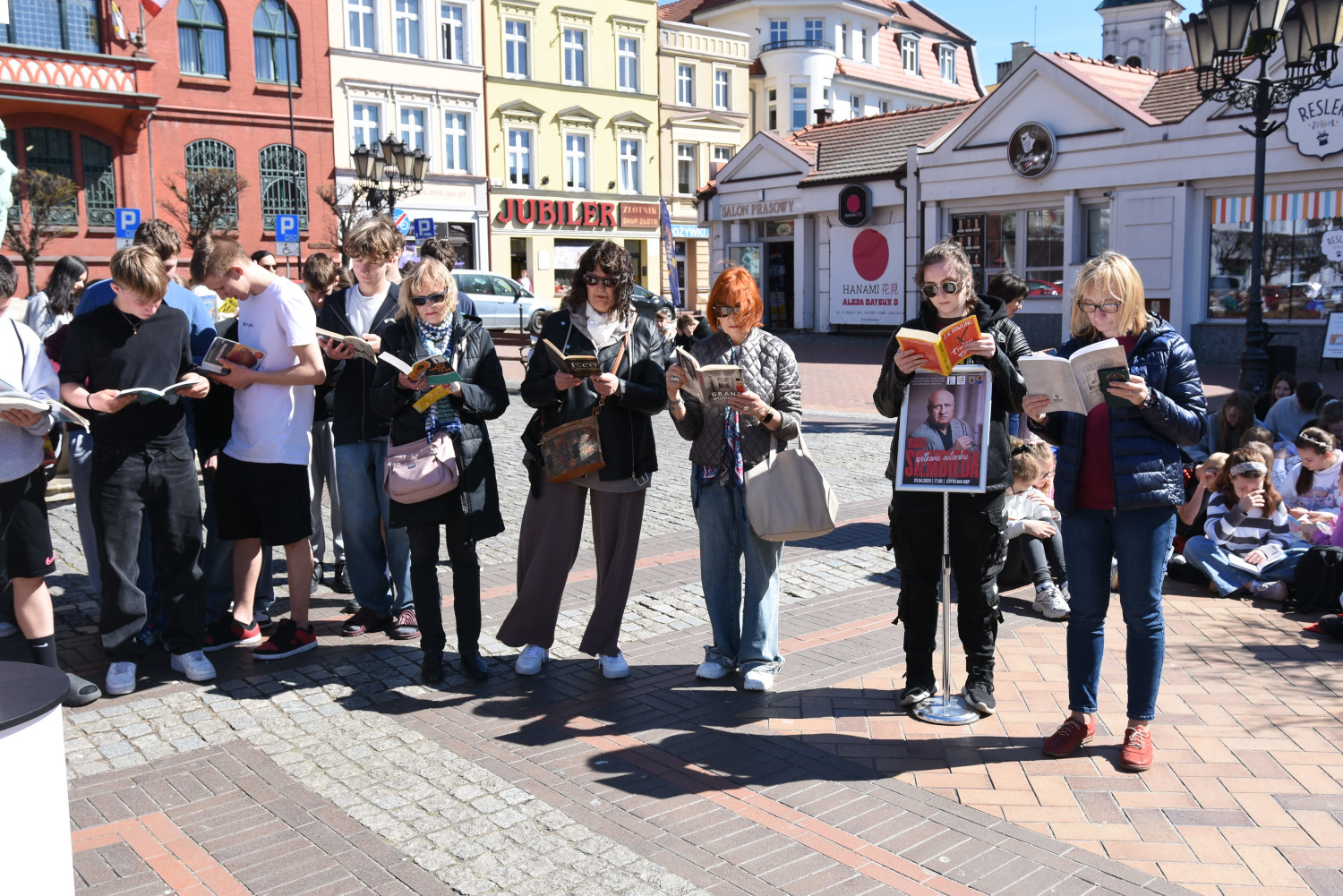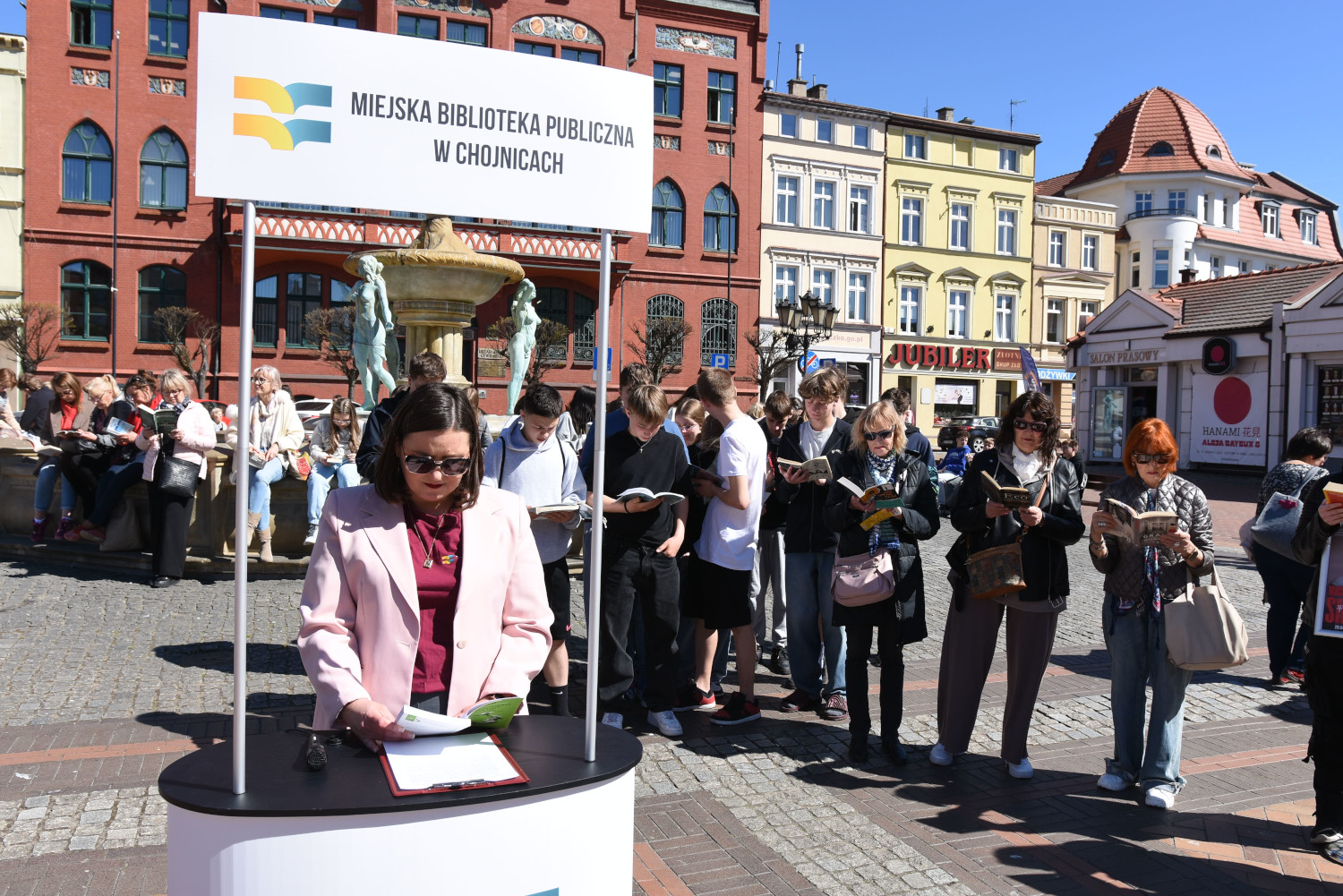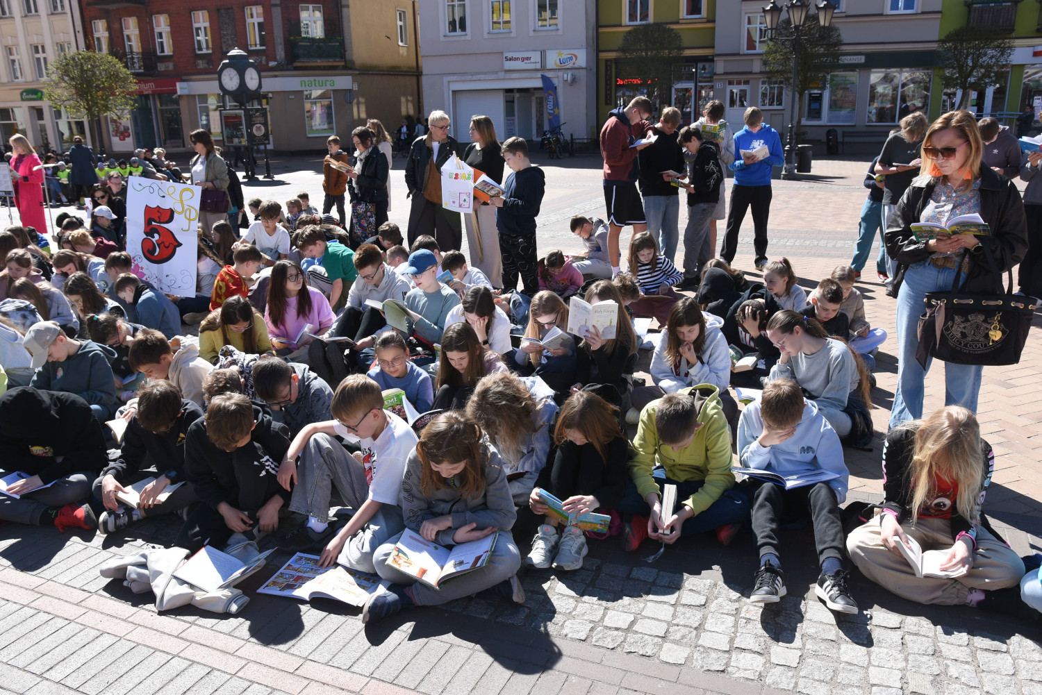 Bicie rekordu na rynku w Chojnicach. Przez kwadrans wspólnie czytało ponad 600 osób FOTO