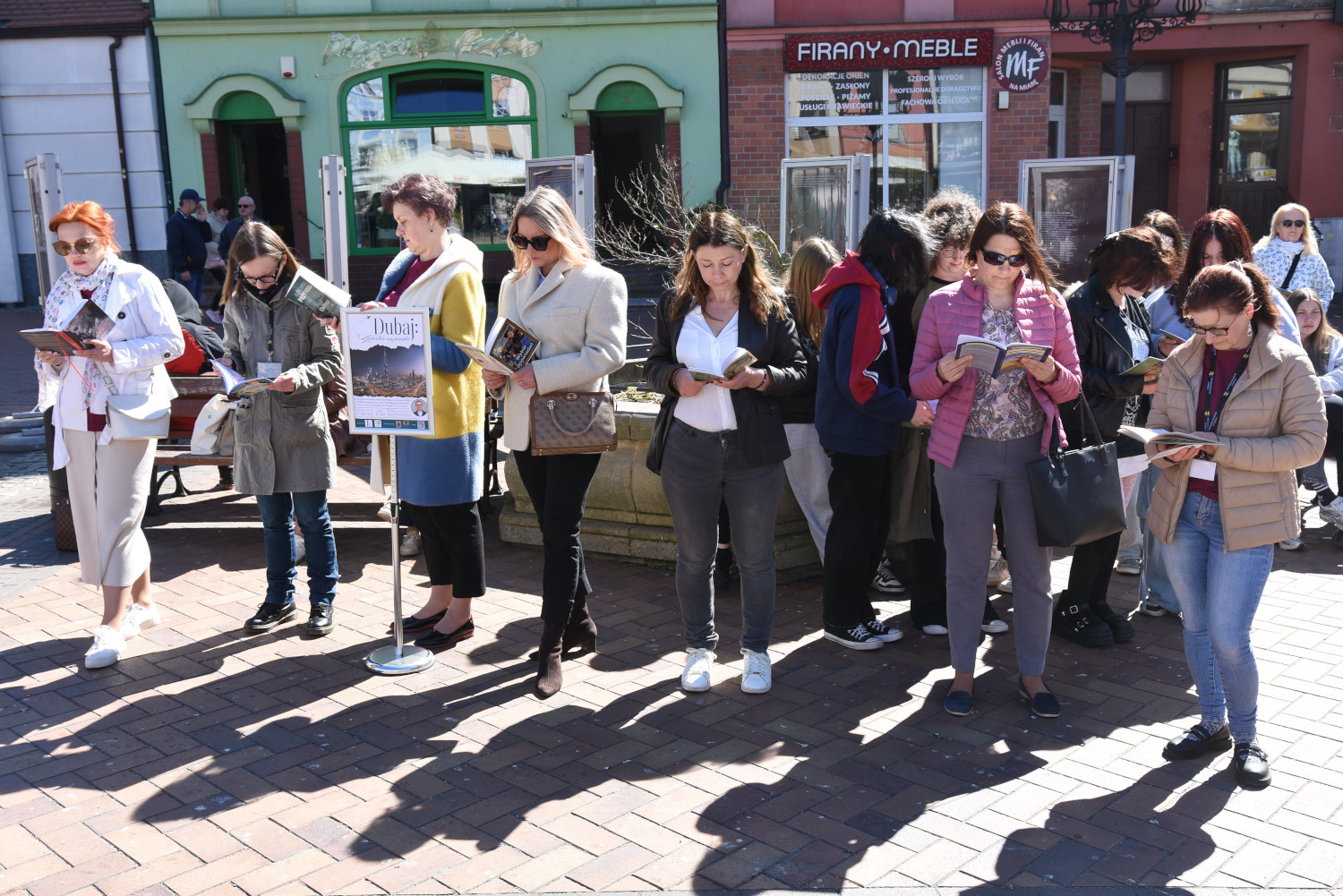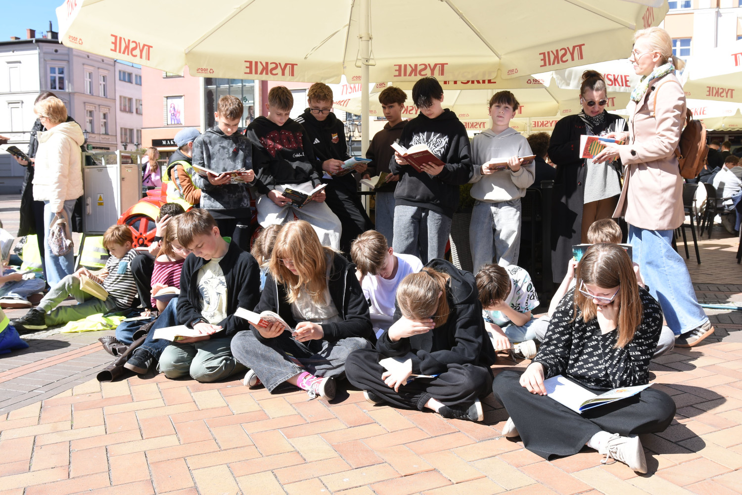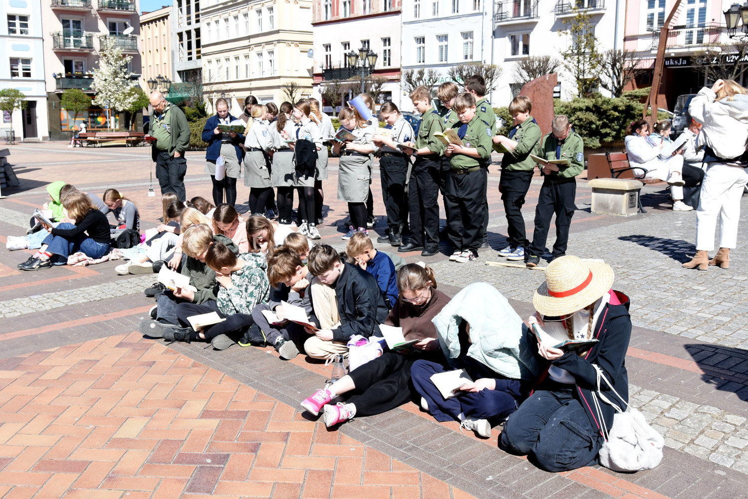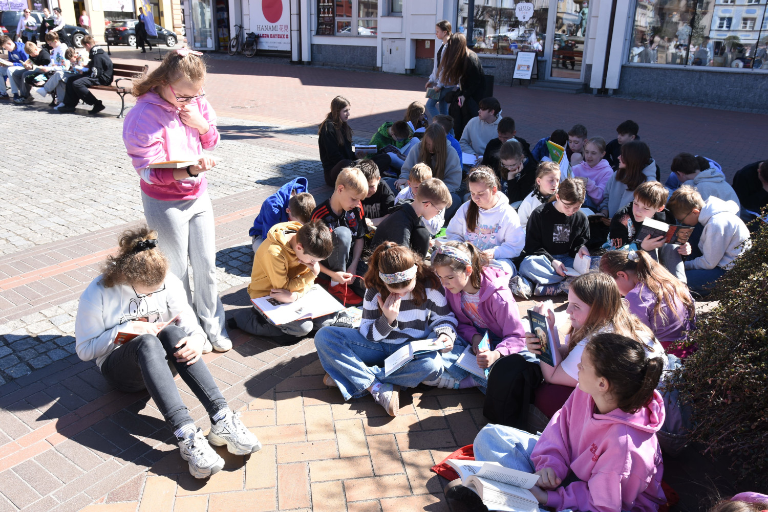 Bicie rekordu na rynku w Chojnicach. Przez kwadrans wspólnie czytało ponad 600 osób FOTO