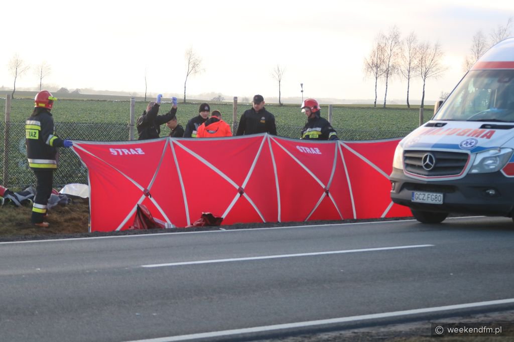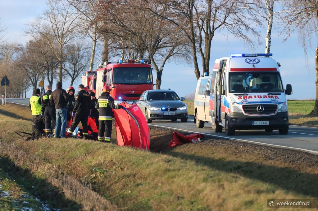 Śmiertelne potrącenie rowerzystki na drodze krajowej nr 25 w gminie Człuchów (FOTO)