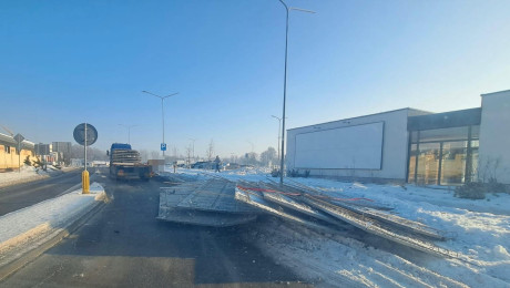 Utrudnienia na ulicy Dworcowej i Wolności w Bytowie. Na jezdnię spadły betonowe płyty (AKTUALIZACJA)